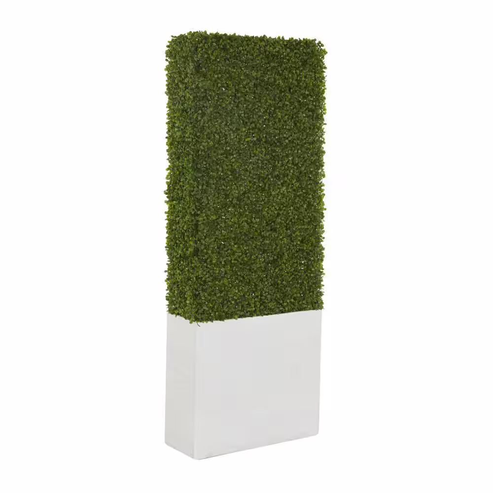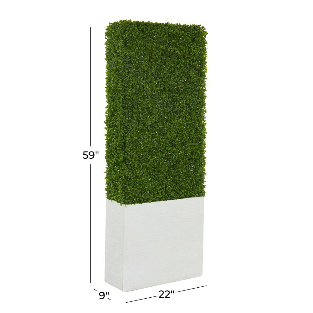 Litton Lane 59 in. H Tall Boxwood Hedge Topiary with Realistic Leaves and White Fiberglass Planter Box
