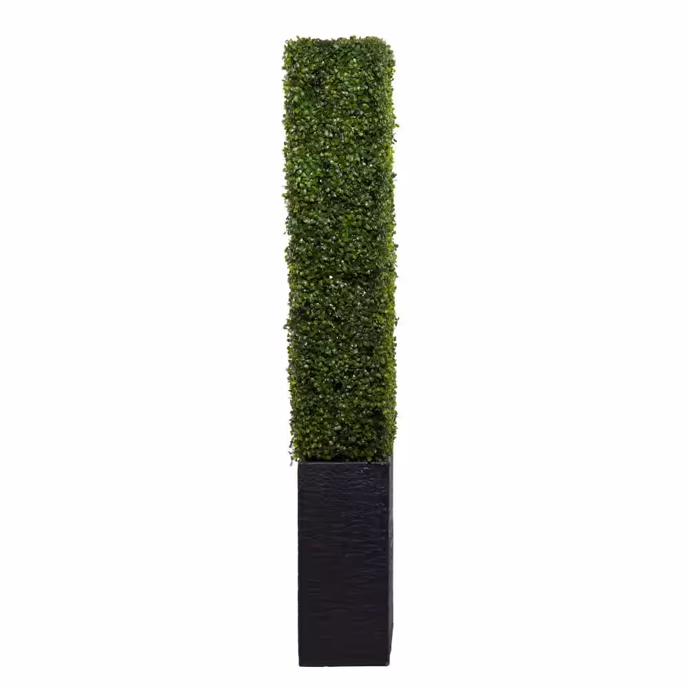 Litton Lane 59 in. H Tall Boxwood Hedge Topiary with Realistic Leaves and Black Cement Planter Box