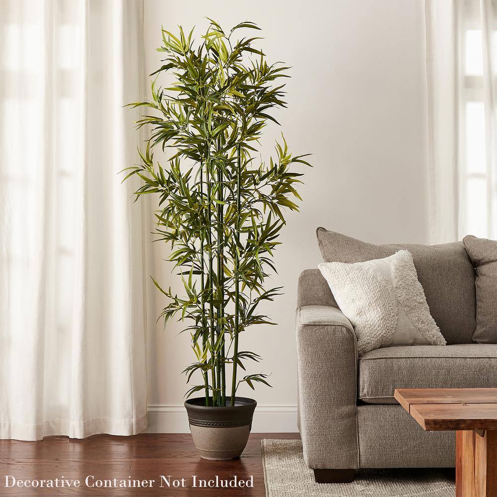 Earth Worth 6 ft. Artificial Bamboo Tree - Potted Faux Floor Plant with Black Trunk and Natural Looking Greenery