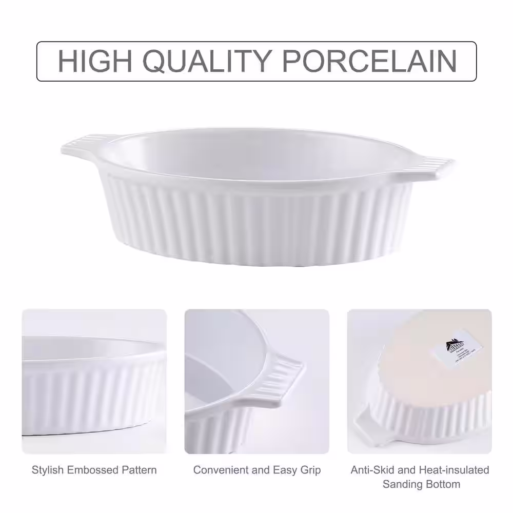 MALACASA 2-Piece White Oval Porcelain Bakeware Set 9.5 in. and 11.25 in. Baking Dishes