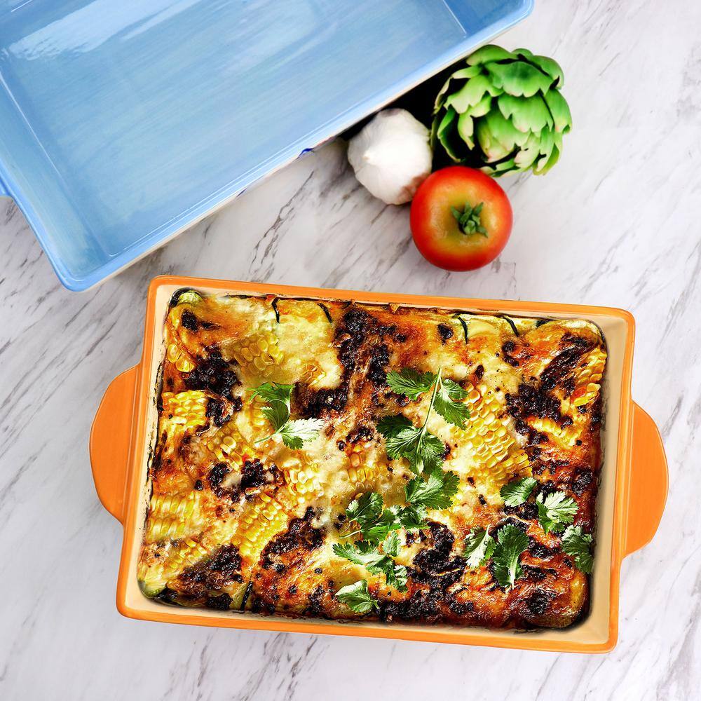 MALACASA 2-Piece Orange Oval Porcelain Bakeware Set 12.75 in. and 14.5 in. Baking Pans