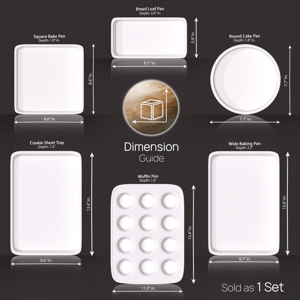 NutriChef Kitchen Oven Baking Pans - Deluxe Non-Stick Bake Tray Sheet Bakeware Set, Ceramic Style (6-Pieces)