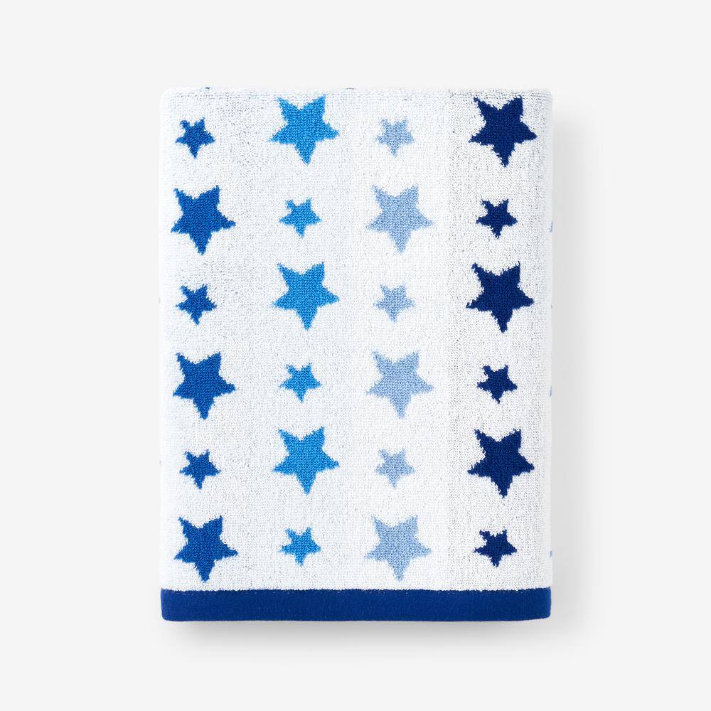 Company Kids by The Company Store Company Kids Star Yarn-Dyed Blue Geometric Cotton Single Bath Towel