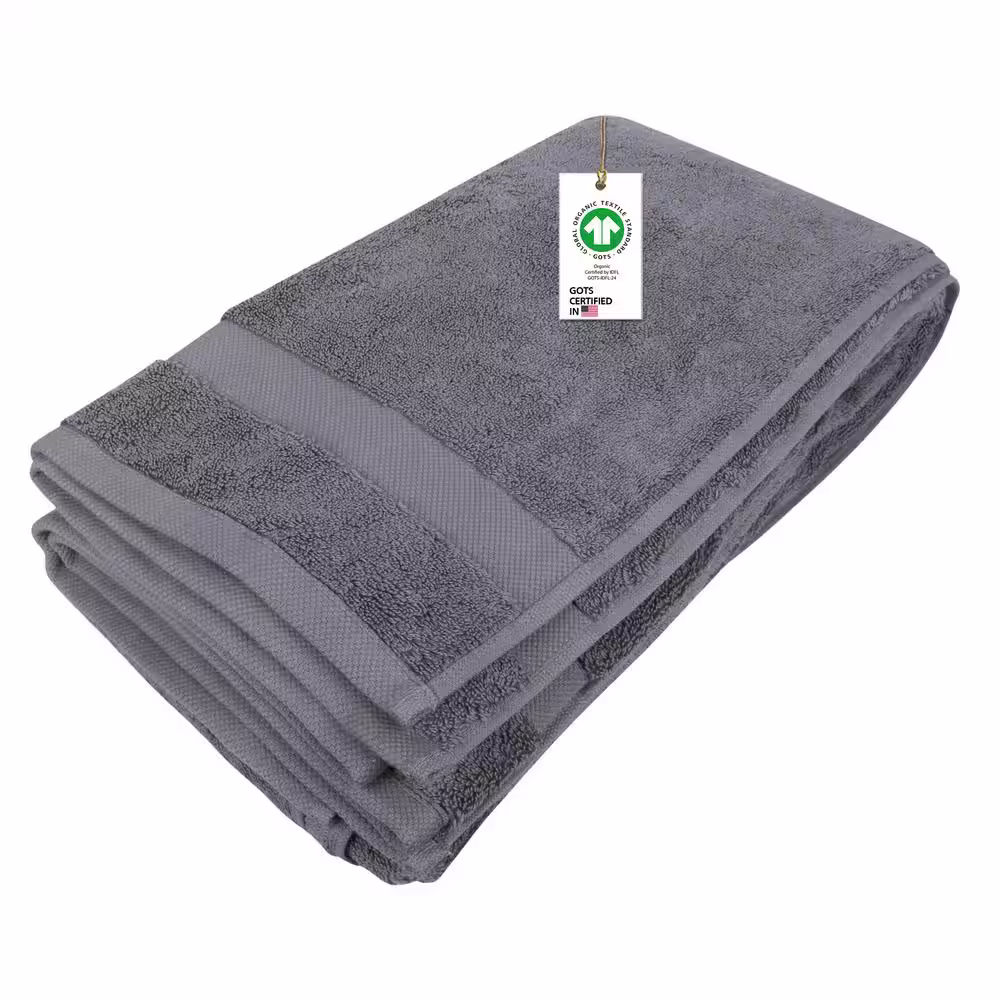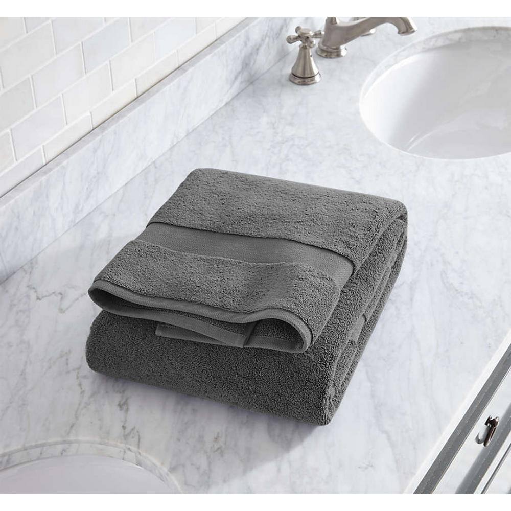 Delara Feather Touch Quick Dry 30 in. x 58 in. Sharkskin Grey Solid 100% Organic Cotton 650 GSM Single Bath Towel
