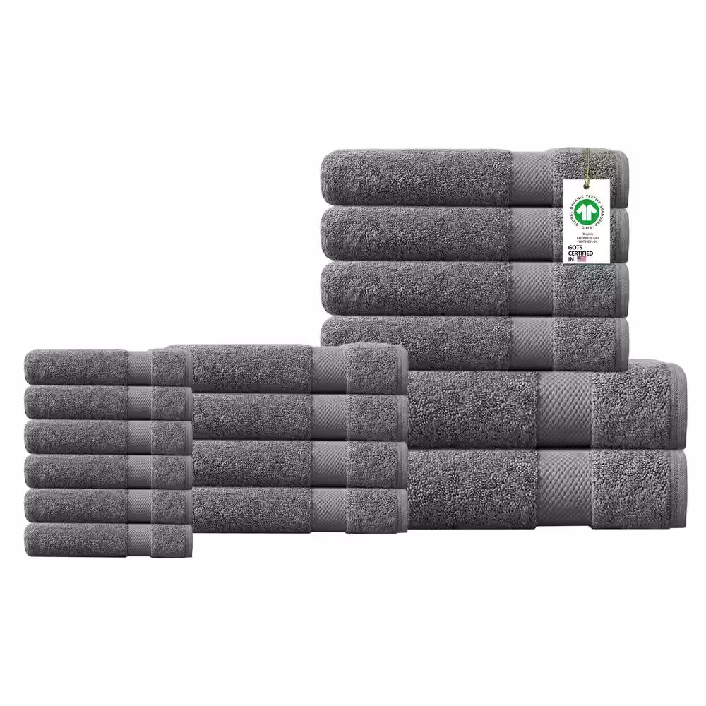 Delara Feather Touch Quick Dry 17-Piece Sharkskin Grey Solid 100% Organic Cotton 650 GSM Towel Set