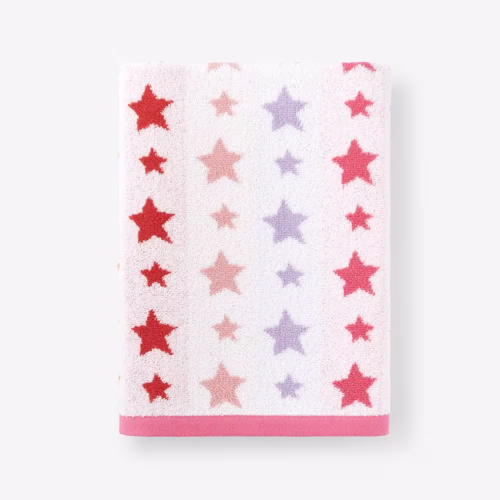 Company Kids by The Company Store Company Kids Star Yarn-Dyed Pink Geometric Cotton Single Bath Towel