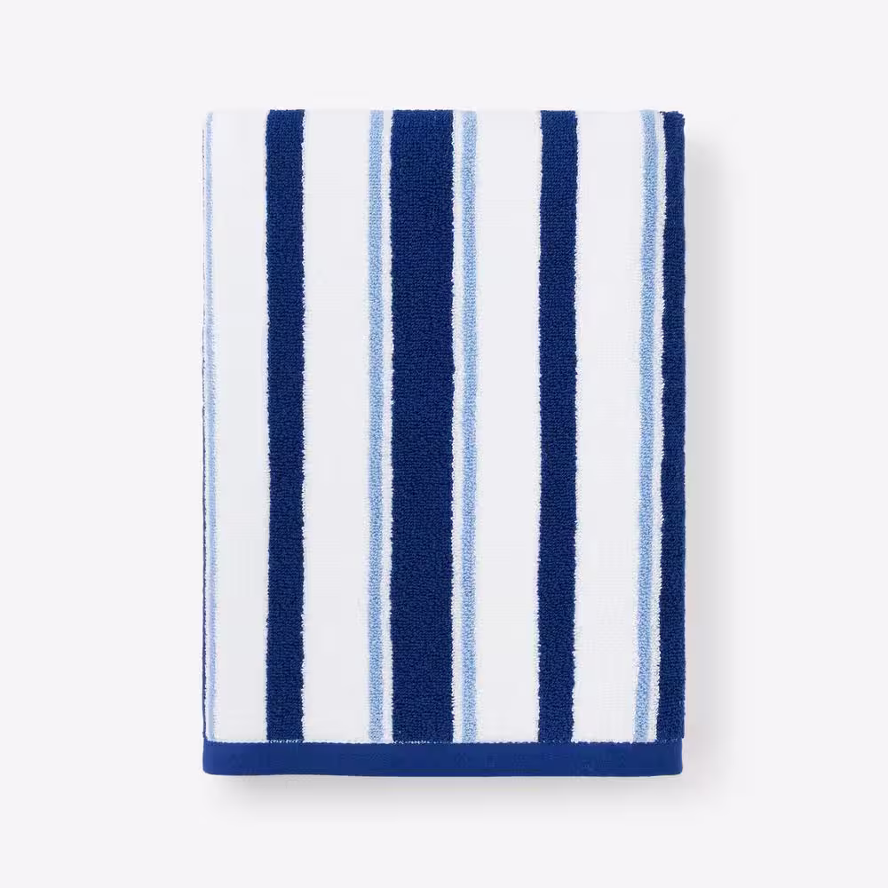 Company Kids by The Company Store Company Kids Stripe Yarn-Dyed Blue Striped Cotton Single Bath Towel