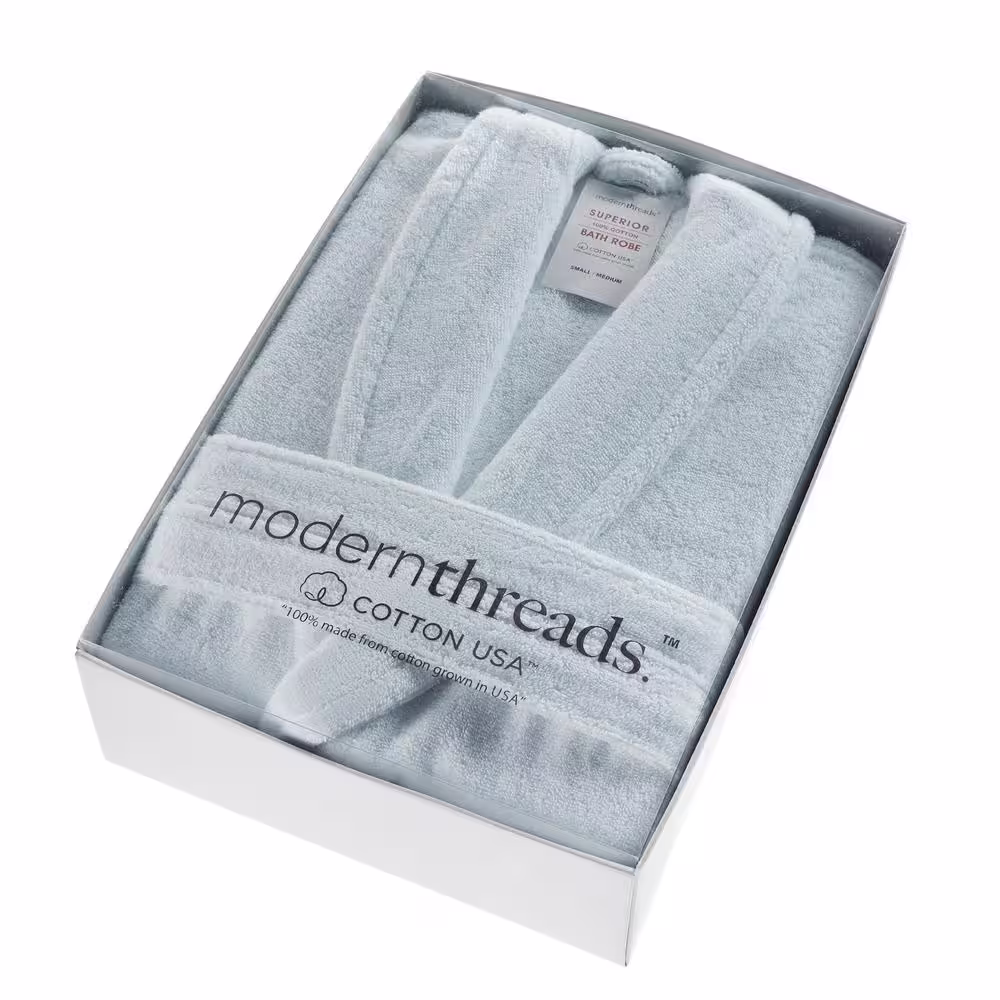 MODERN THREADS 100 % USA Cotton Classic Bathrobe with Shawl Collar Mineral Large/X Large
