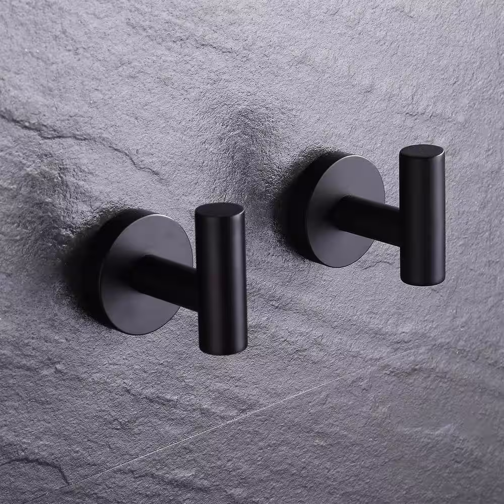 ruiling Round Bathroom Robe Hook and Towel Hook in Stainless Steel Matte Black (2-Pack)