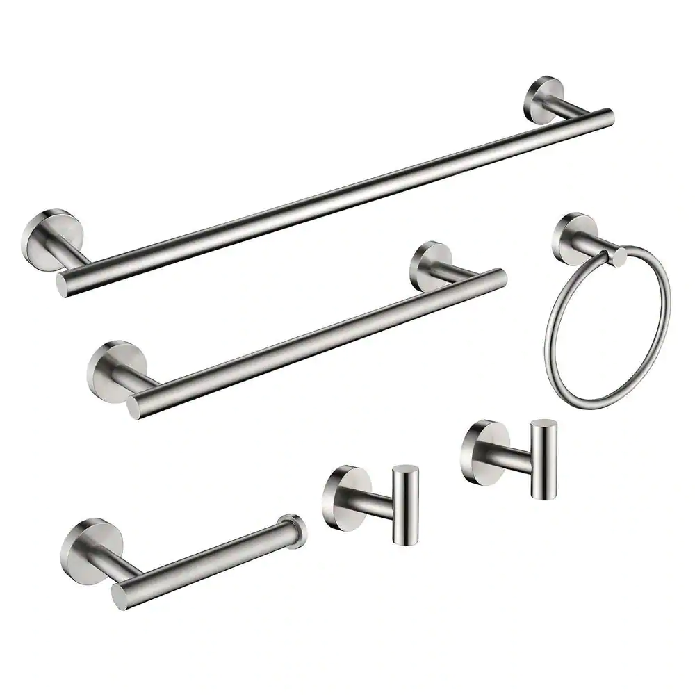 None Modern 6-Pieces Bath Hardware Set with Towel rail*2 Paper towel rack*1 Towel ring*1 Hook*2 in Brushed Nickel
