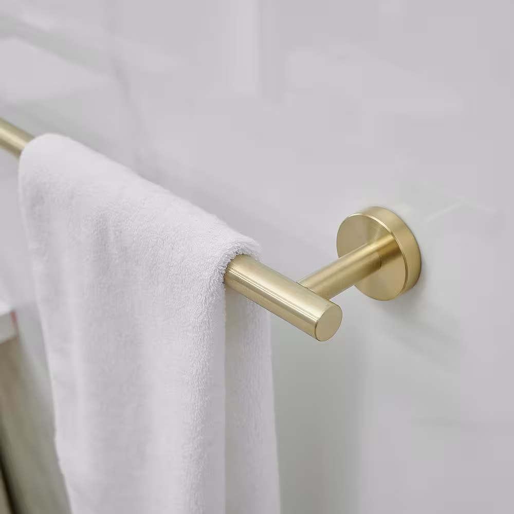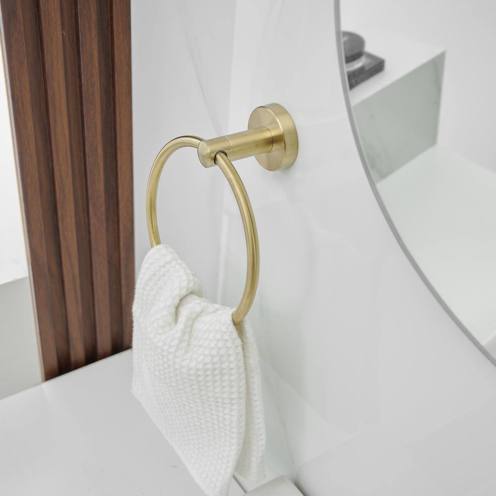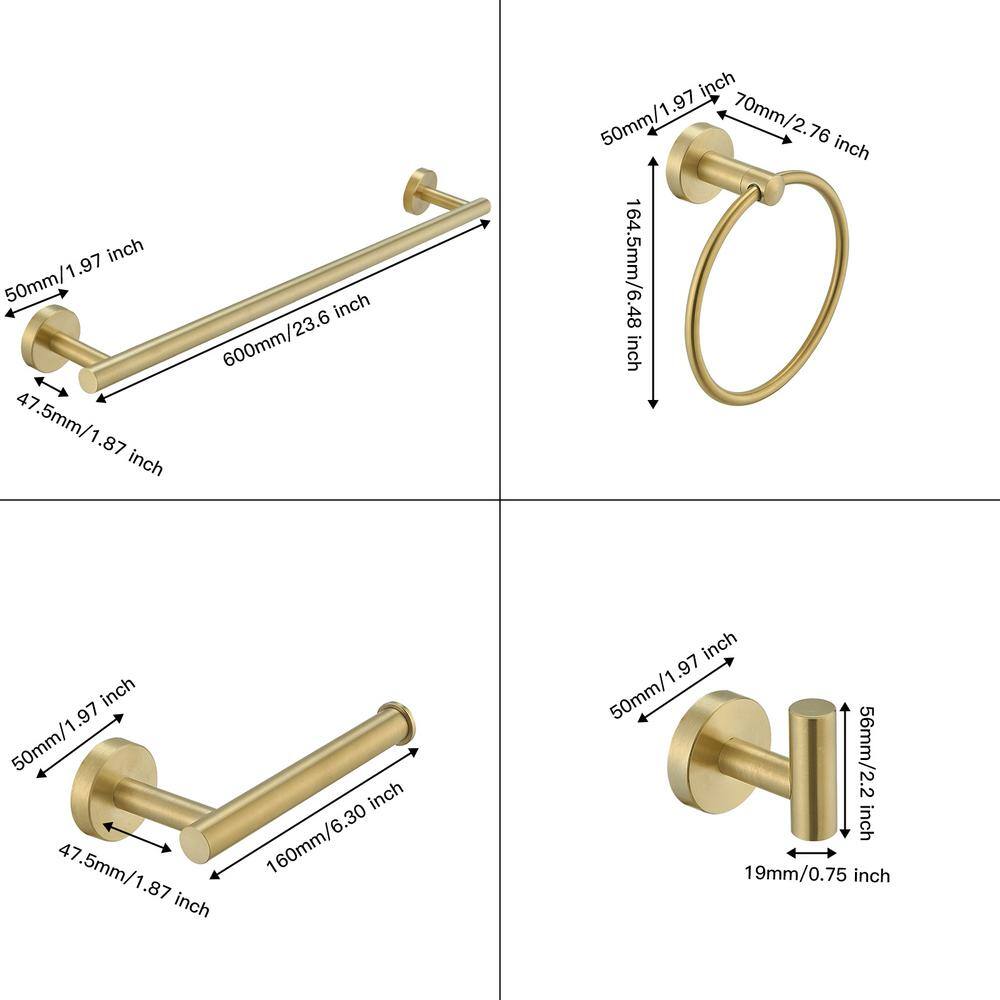 BWE 5-Piece Bath Hardware with Towel Bar Towel Hook Toilet Paper Holder and Towel Ring Set in Brushed Gold