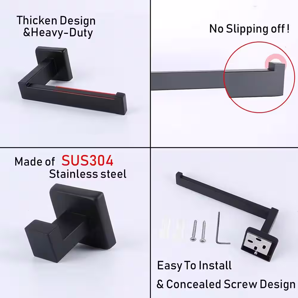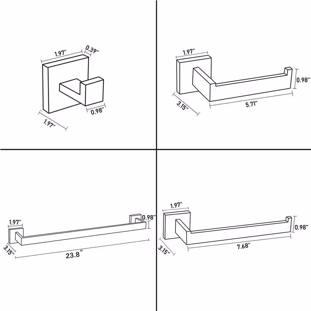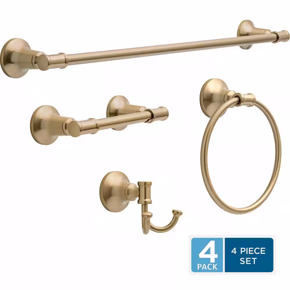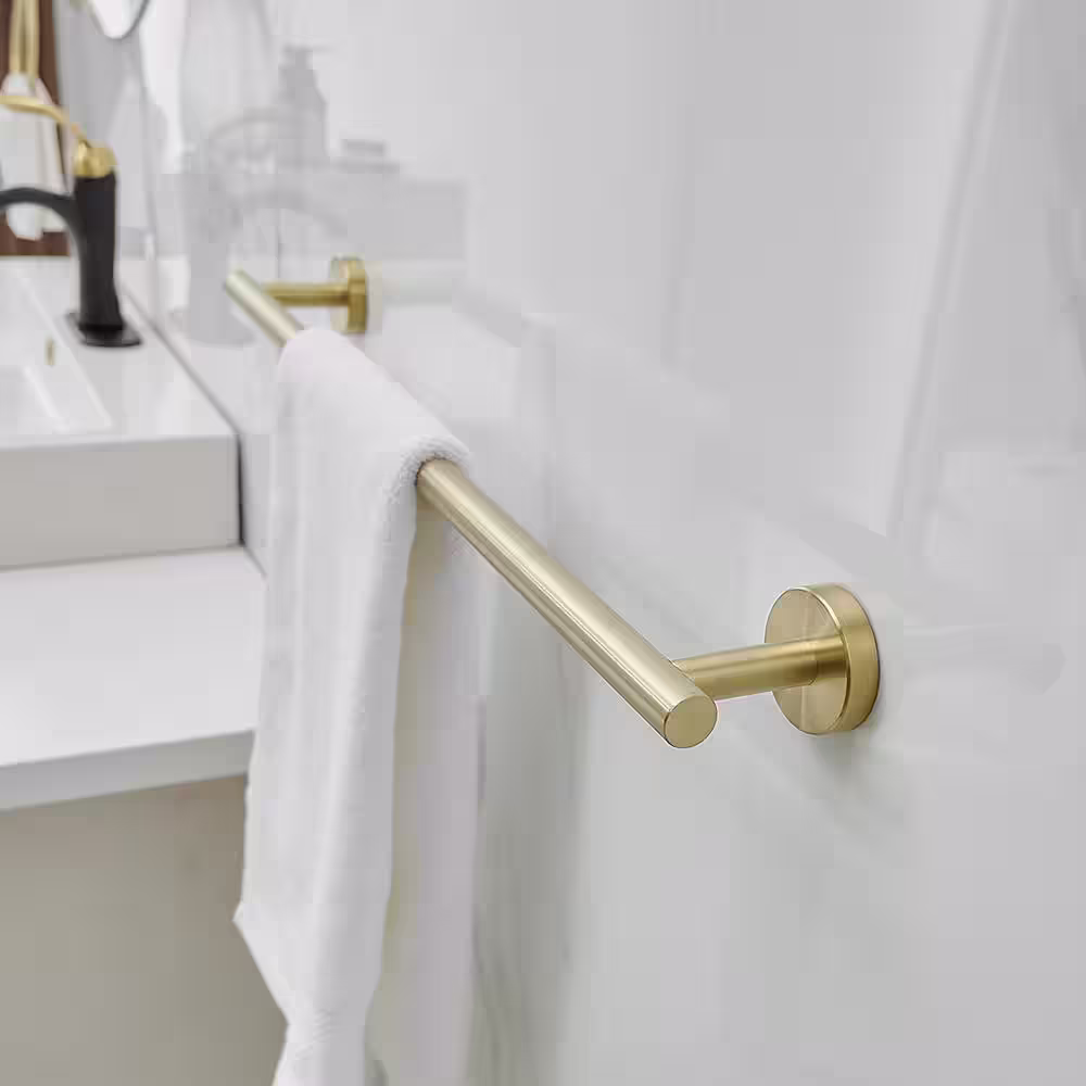 BWE 5-Piece Bath Hardware with Towel Bar Towel Hook Toilet Paper Holder and Towel Ring Set in Brushed Gold