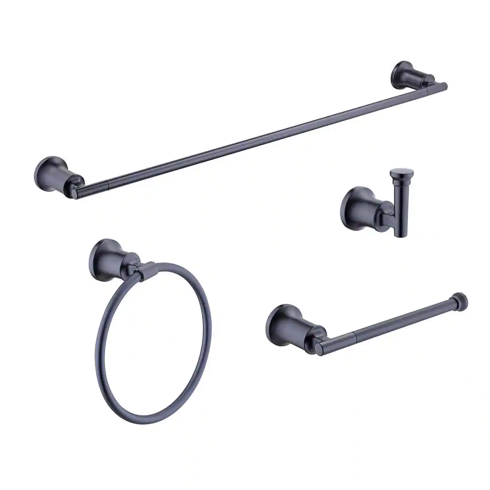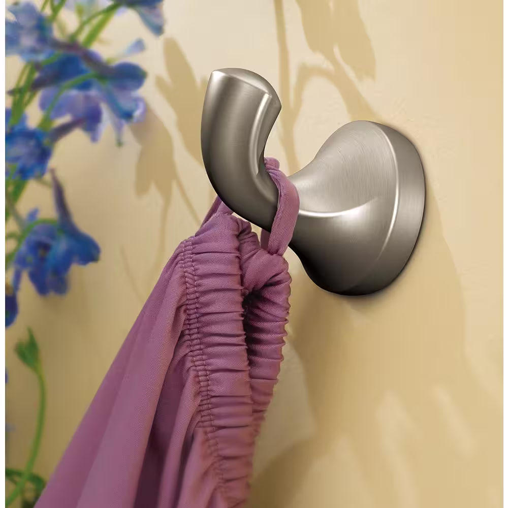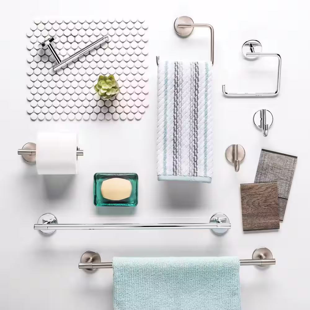 MOEN Eva 4-Piece Bath Hardware Set with 24 in. Towel Bar, Paper Holder, Towel Ring, and Robe Hook in Brushed Nickel