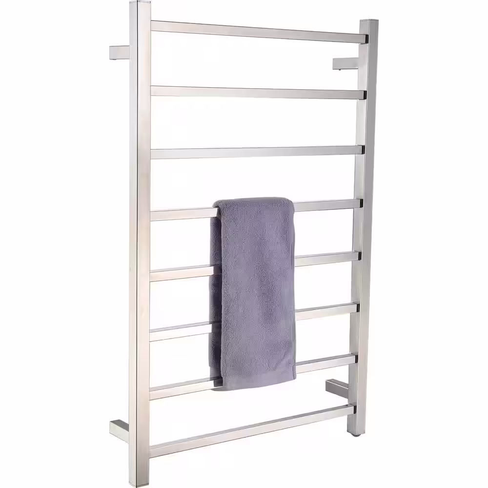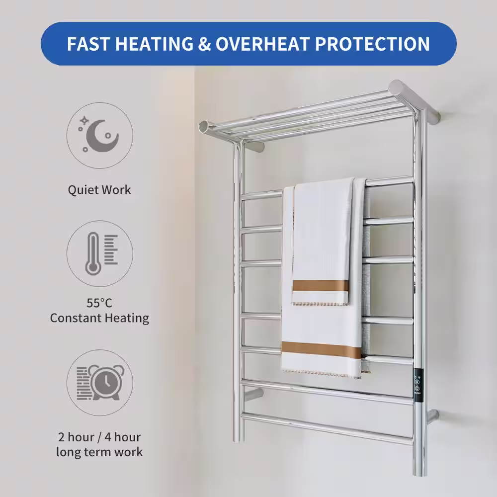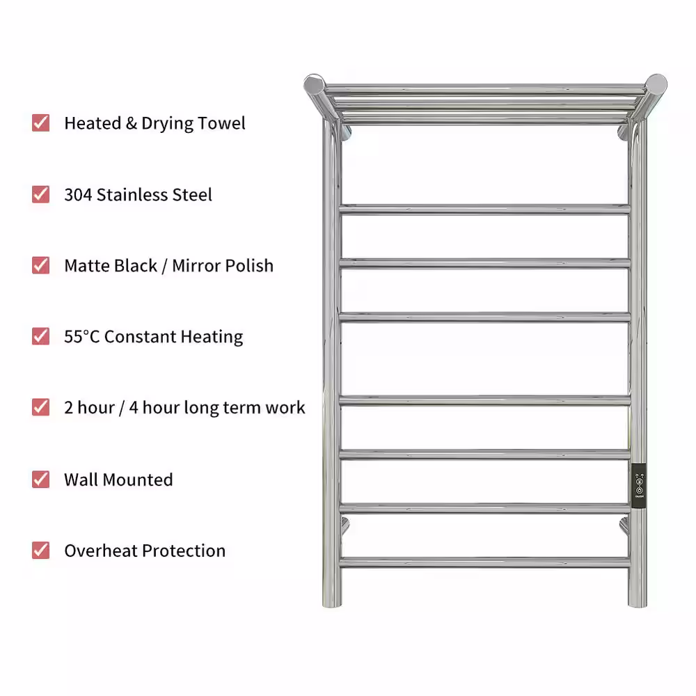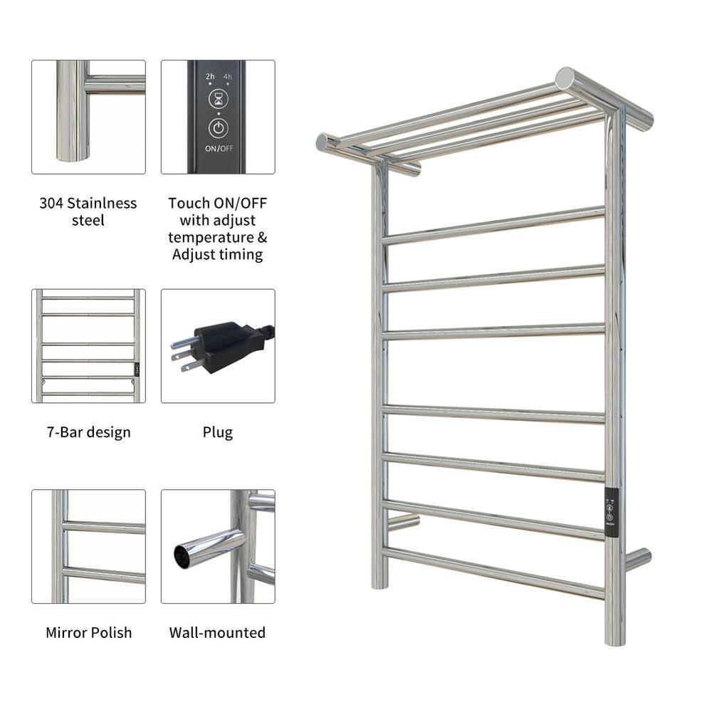 None 7-Bars Stainless Steel Wall Mounted Electric Towel Warmer Rack with Top Shelf in Polished Silver