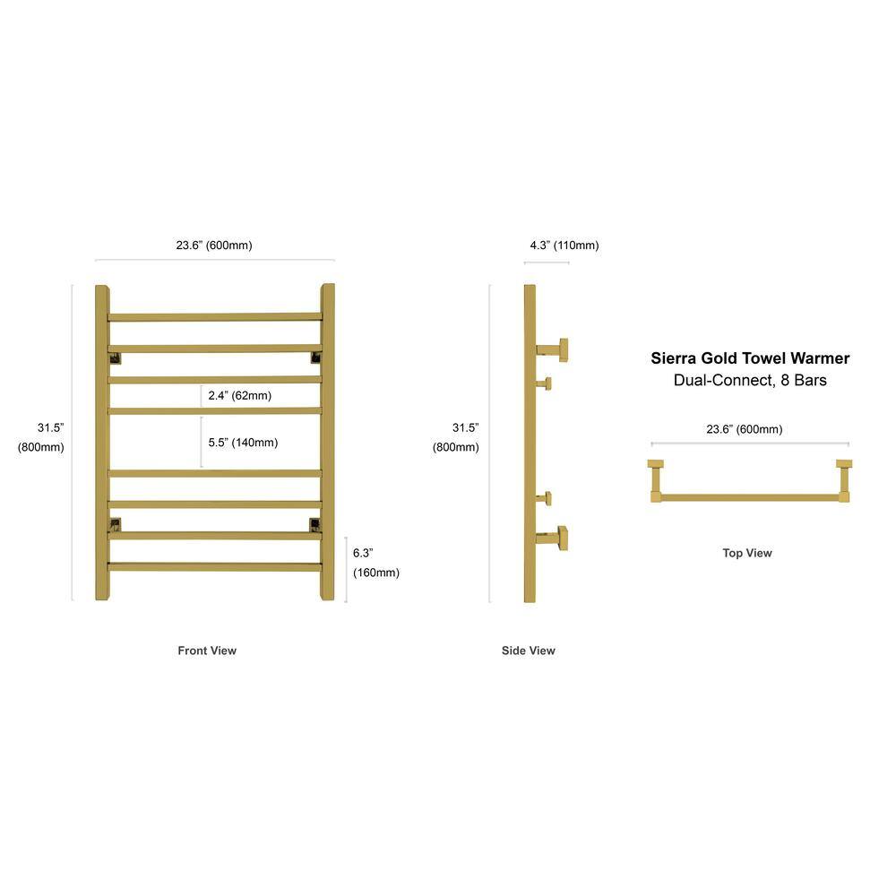 WarmlyYours Sierra 8-Bar Plug-In and Hardwire 120-Volt 32 in. Towel Warmer in Gold Stainless Steel