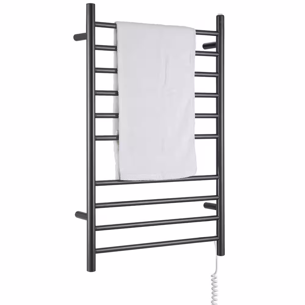 WarmlyYours Classic Maple 8-Bar Electric Hardwired Towel Warmer in Matte Black
