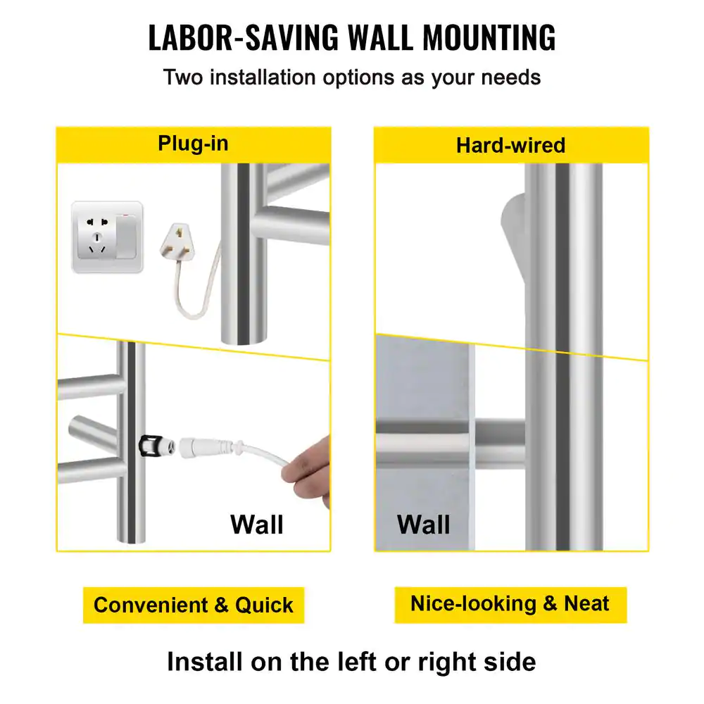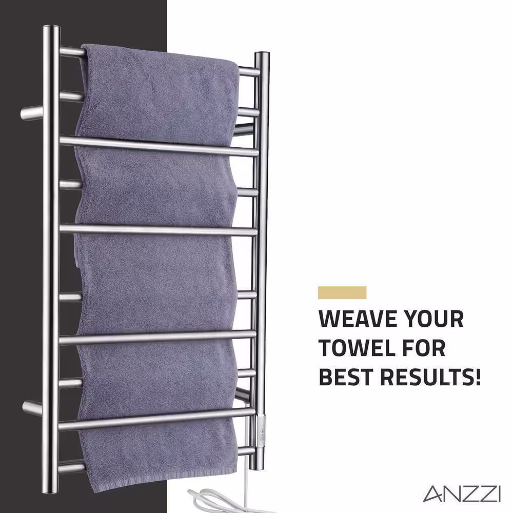 ANZZI Crete 10-Bar Stainless Steel Plug-in Wall Mounted Towel Warmer Rack in Brushed Nickel