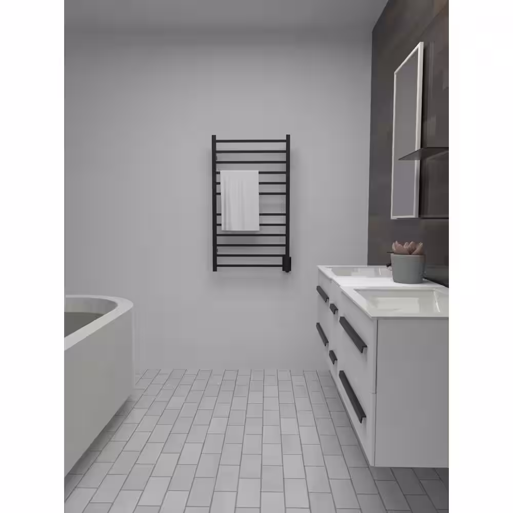 Amba Radiant Square Large 12-Bar Hardwired Electric Towel Warmer in Matte Black