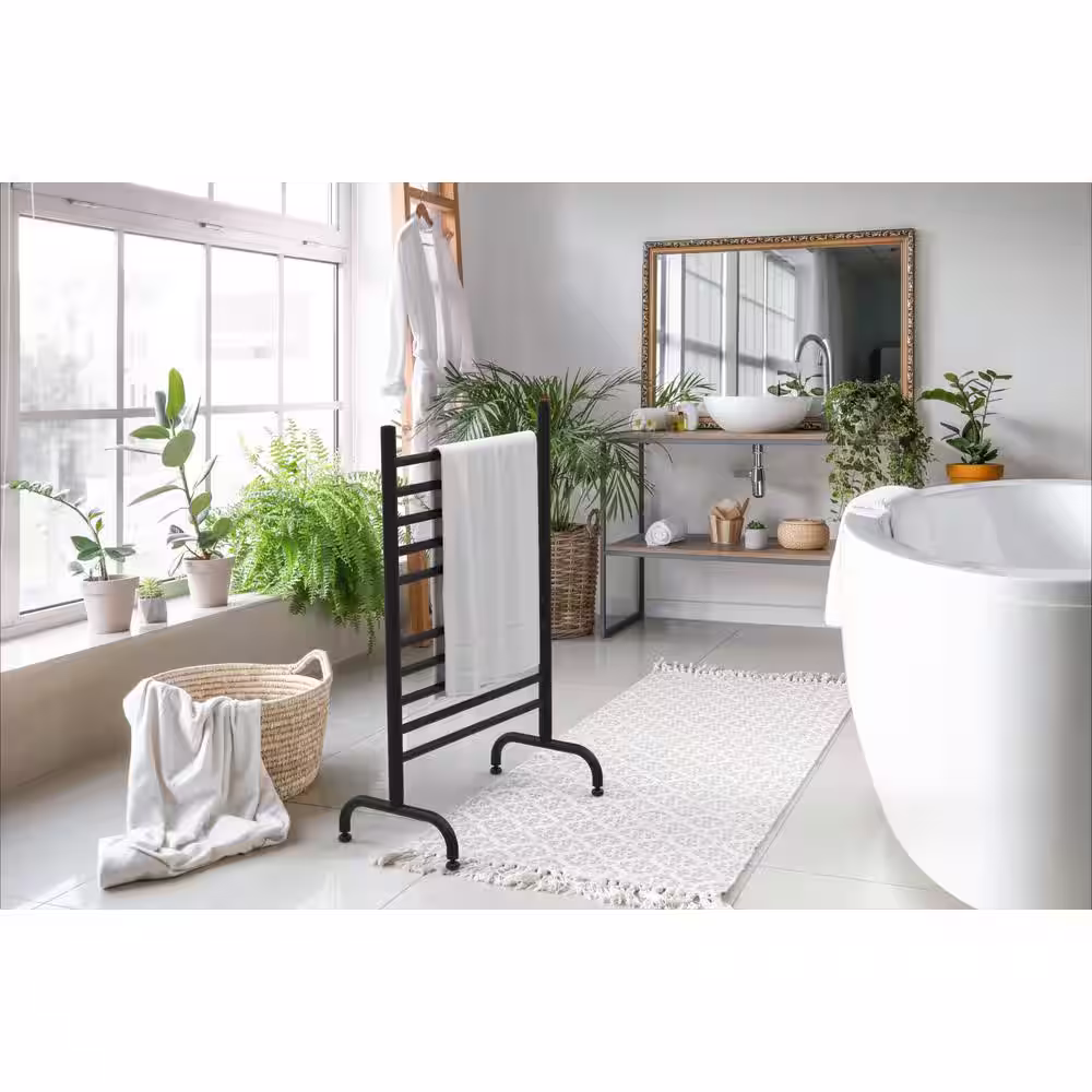 Amba Solo 33 in. Wide Freestanding 10-Bar Plug-in Electric Towel Warmer in Matte Black