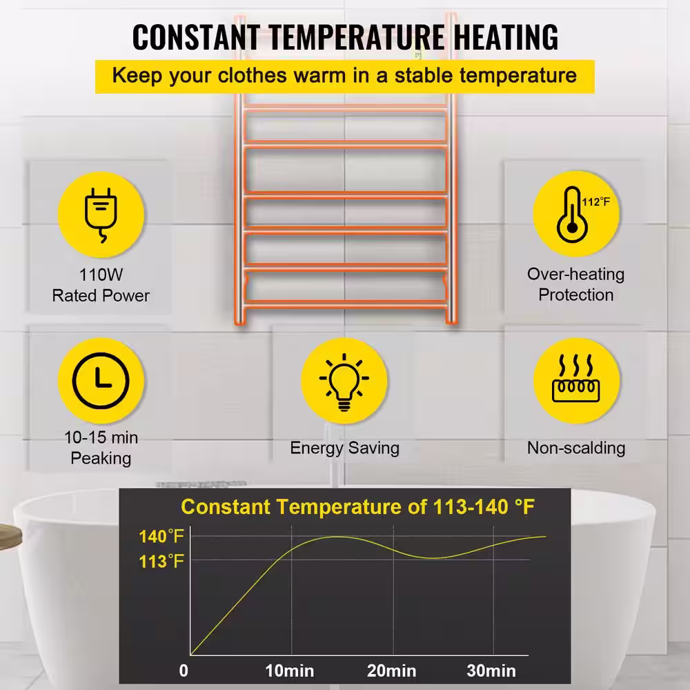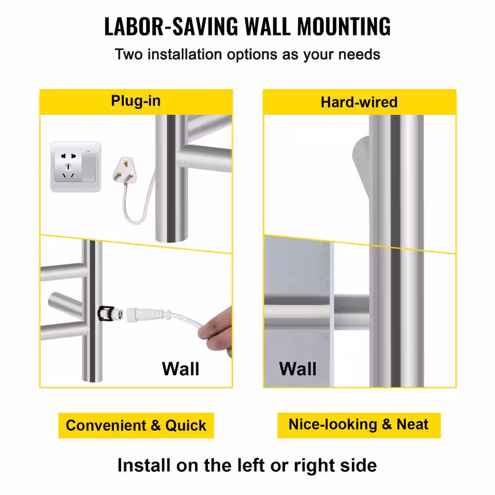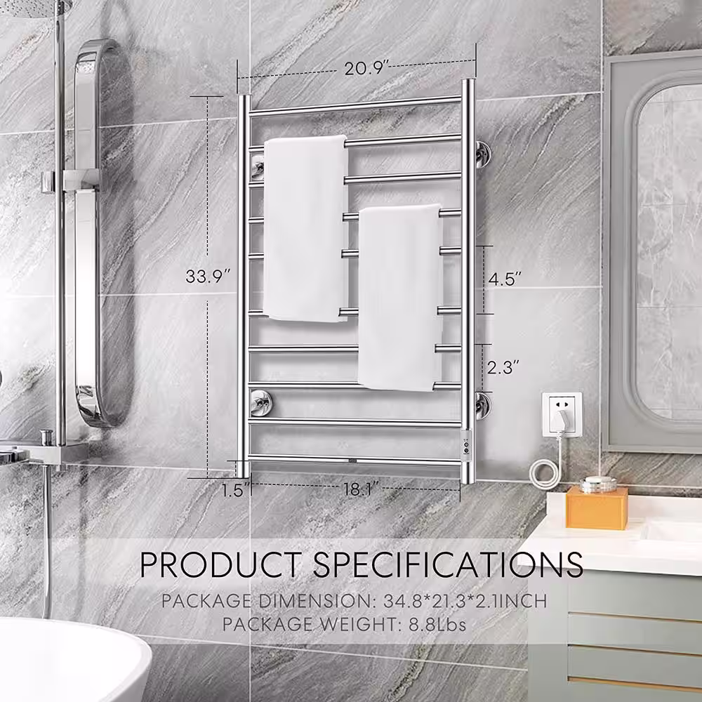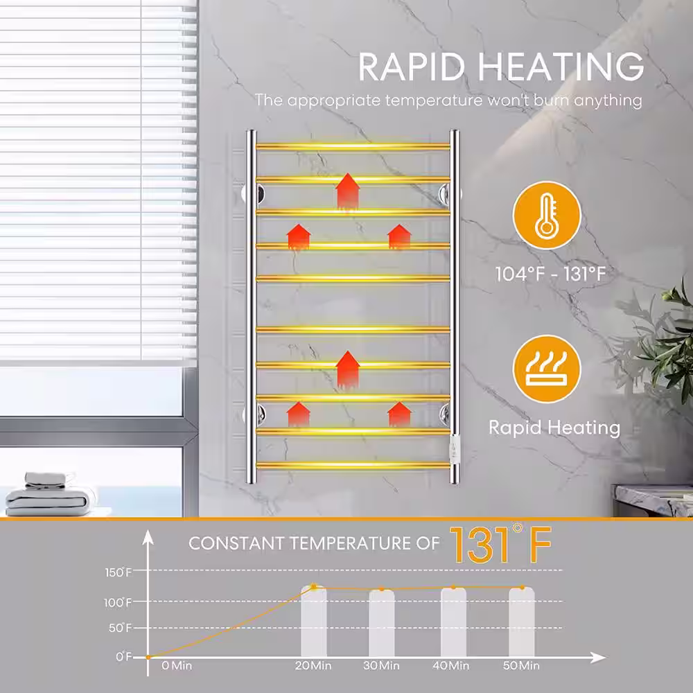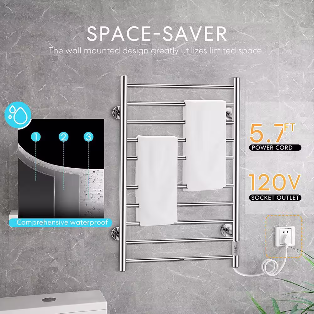 VIVOHOME Electric Heated 10-Bar Wall Mounted Towel Rack in Stainless Steel