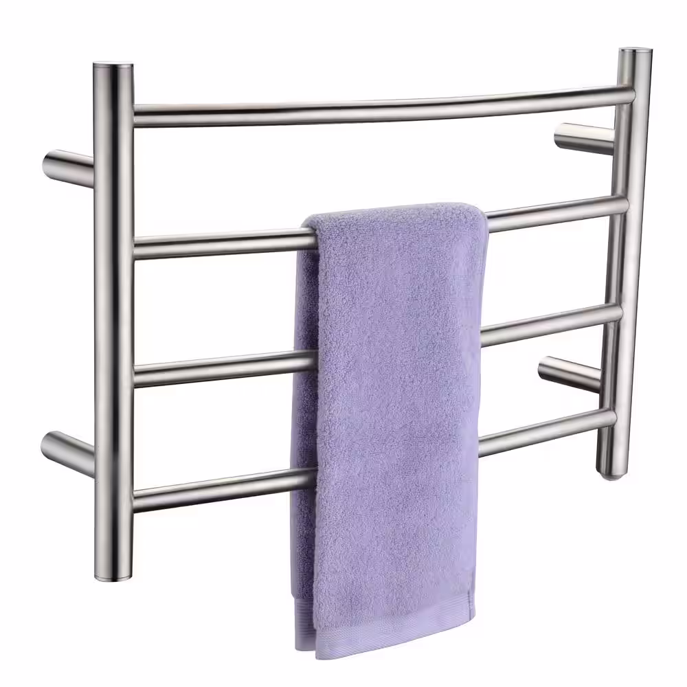 Amba Radiant Large Curved 12-Bar Hardwired Electric Towel Warmer in Brushed Stainless Steel