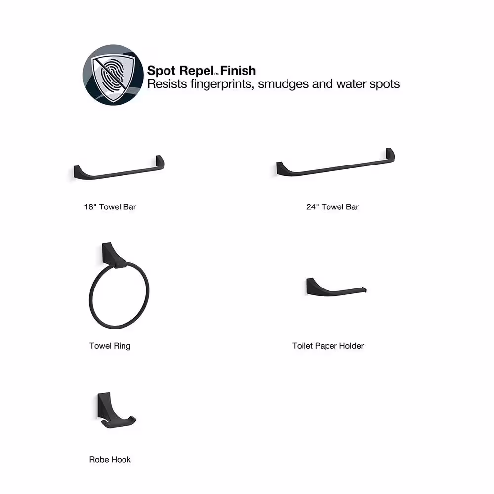 Delta Ara Wall Mount Square Closed Towel Ring Bath Hardware Accessory in Matte Black