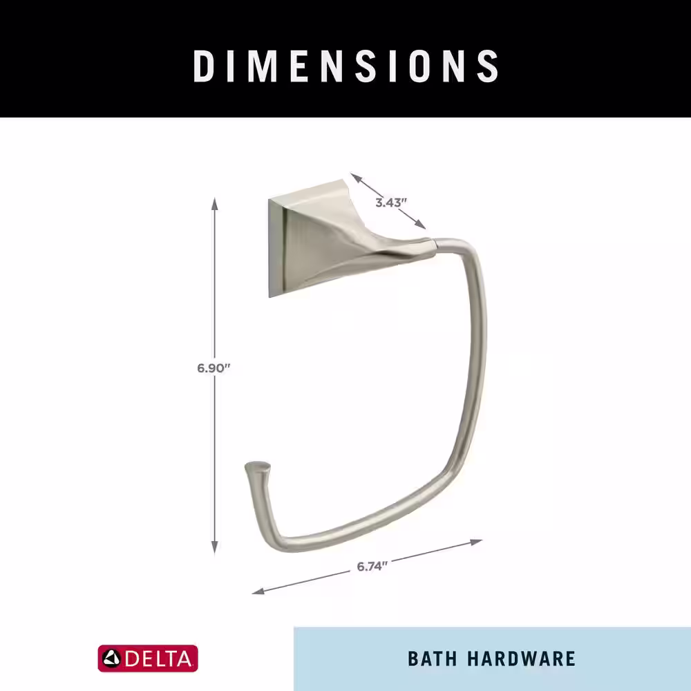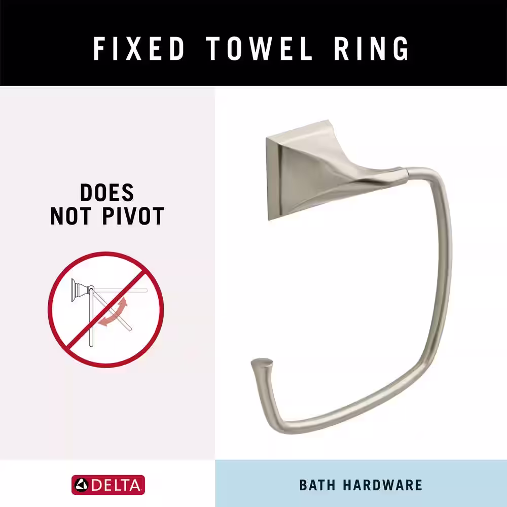 Delta Everly Wall Mount Square Open Towel Ring Bath Hardware Accessory in Brushed Nickel
