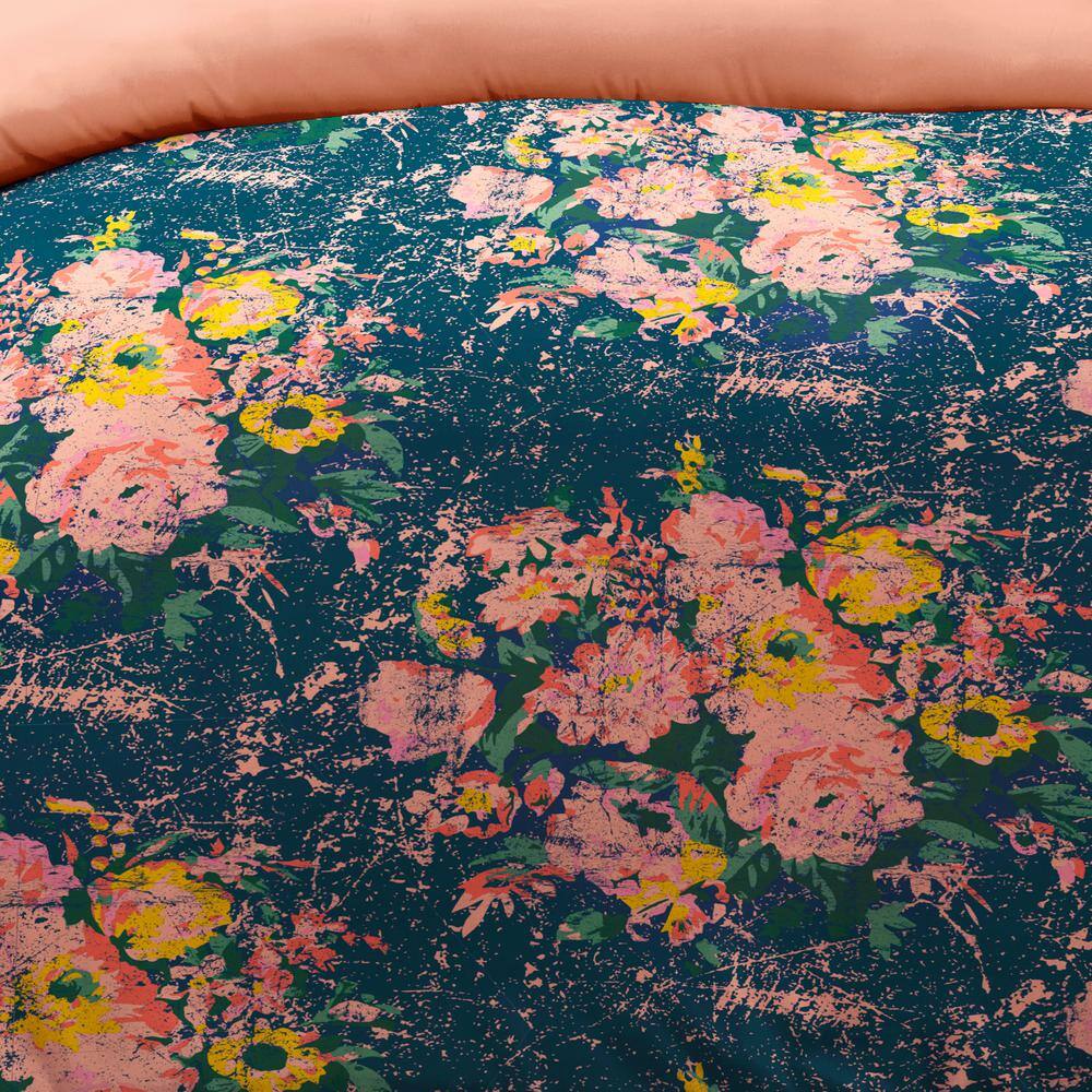 None 3-Piece Navy Floral Reversible Microfiber Twin/Twin XL Comforter Set