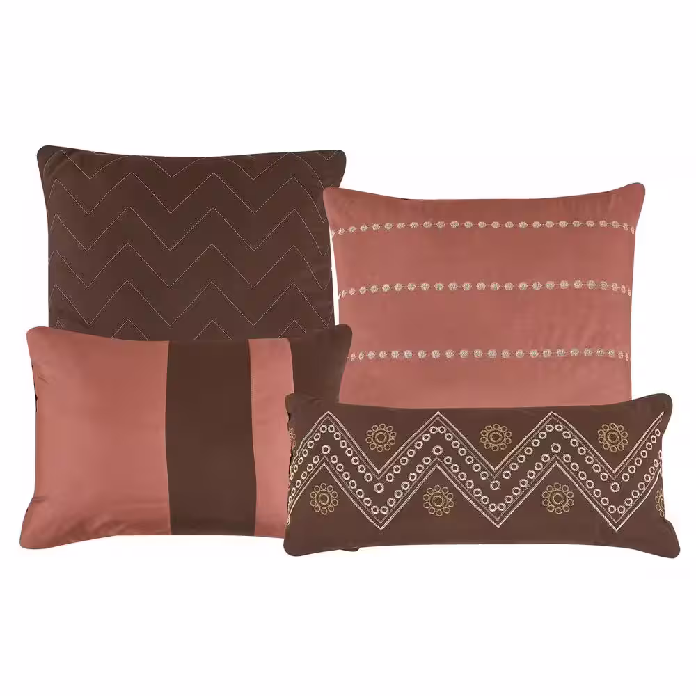 Shatex 7 Piece All Season Bedding Queen size Comforter Set, Ultra Soft Polyester Elegant Bedding Comforters Brown