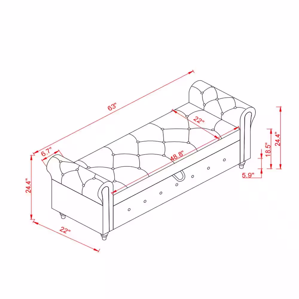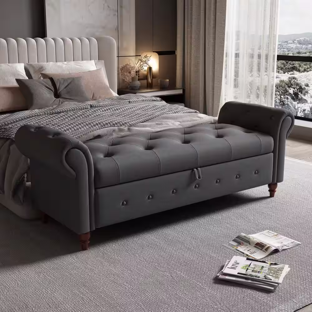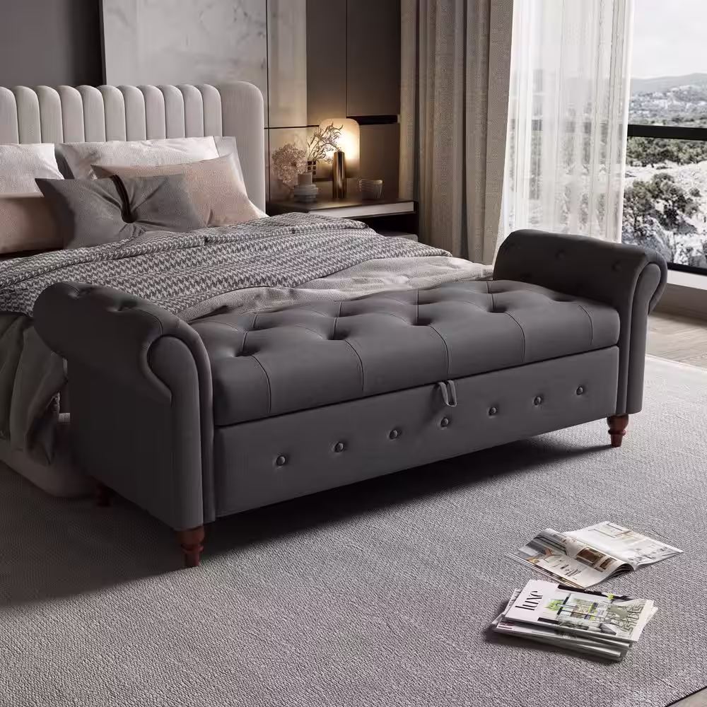 Harper & Bright Designs Dark Gray Tufted Armed Storage Bedroom Bench 24.4 in. H x 63 in. W x 22 in. D