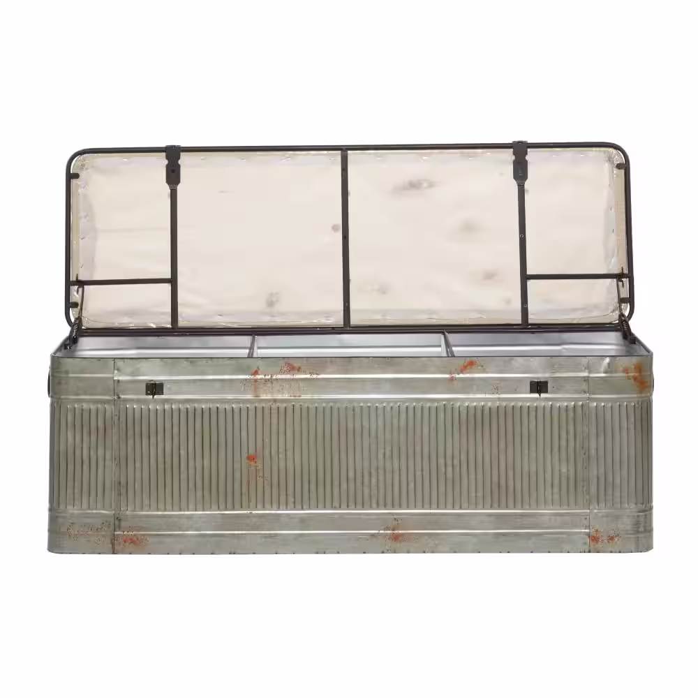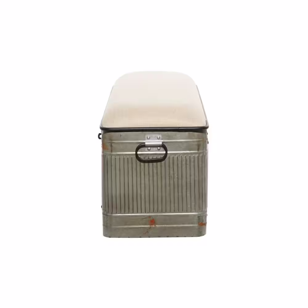 Litton Lane Gray Galvanized Storage Bench with Cream Burlap Top 18 in. X 50 in. X 16 in.