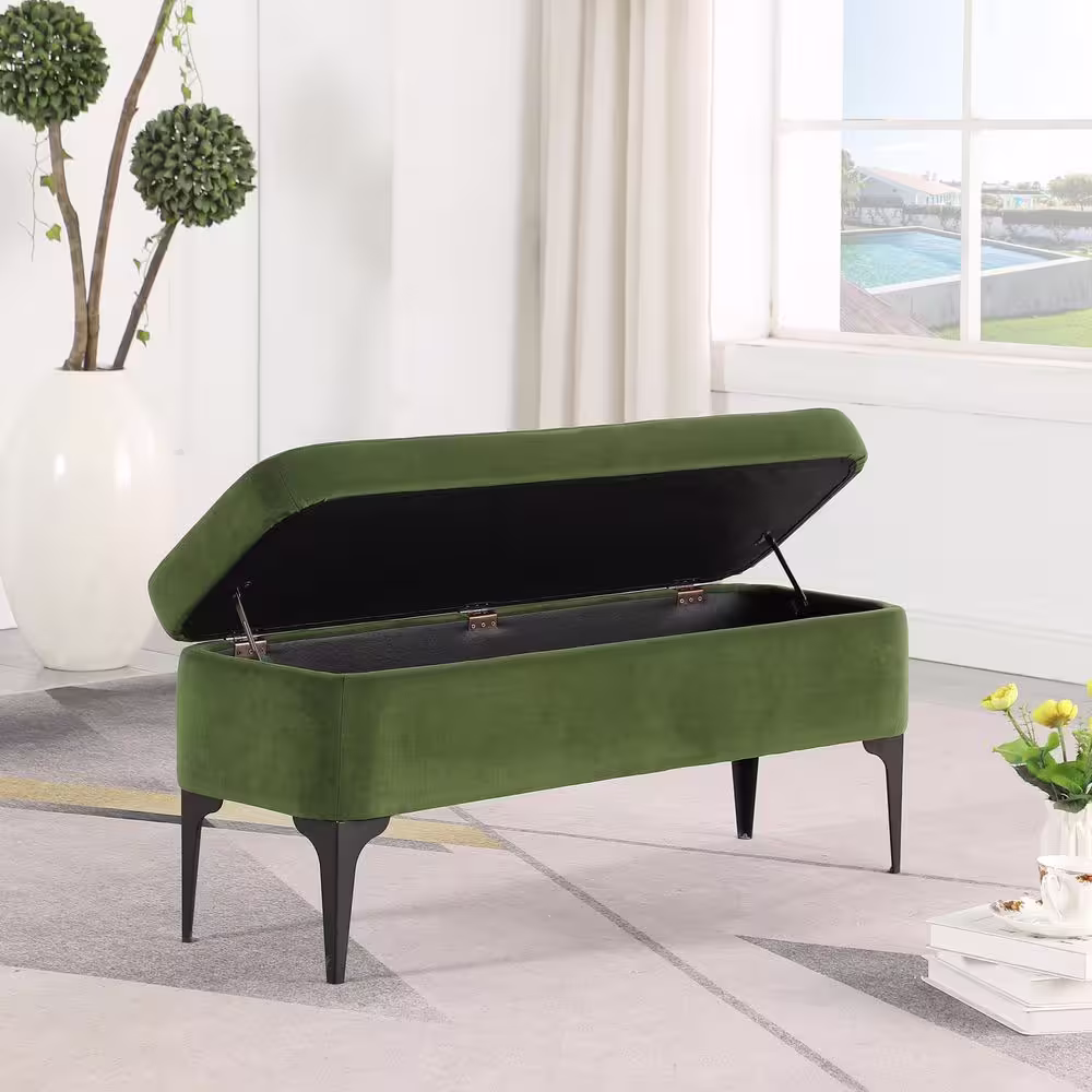 Homepop Large Modern Green Velvet Storage Bench 17.5 in. H x 42 in. W x 14.5 in. D