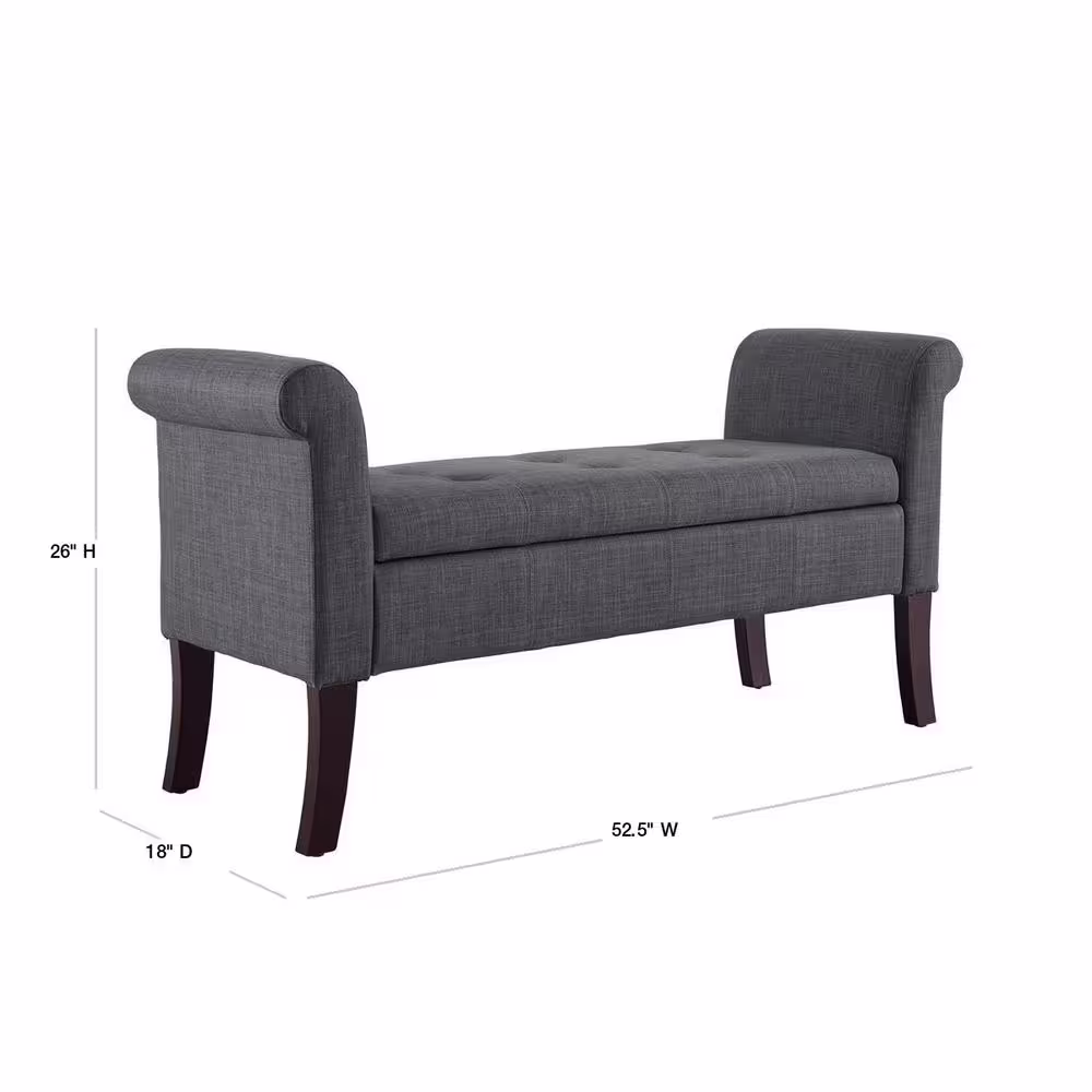 Simpli Home Hamilton 48 in. Wide Transitional Rectangle Storage Ottoman in Natural Linen Look Fabric