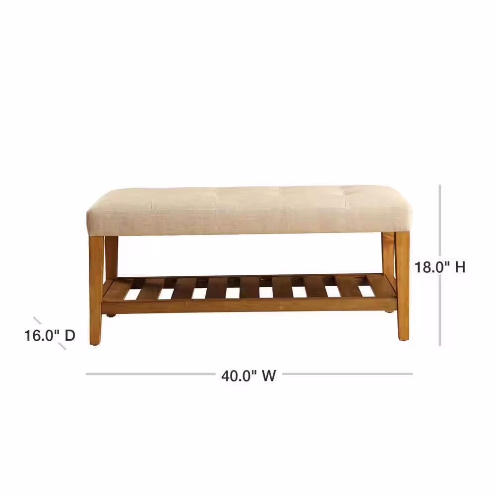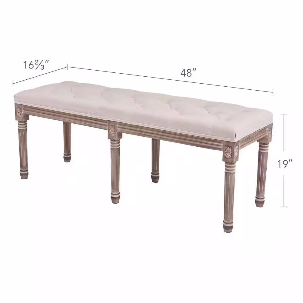 Merra Beige French Vintage Ottoman Bench with Linen Upholstery (19 in. x 48 in. x 16.7 in.)