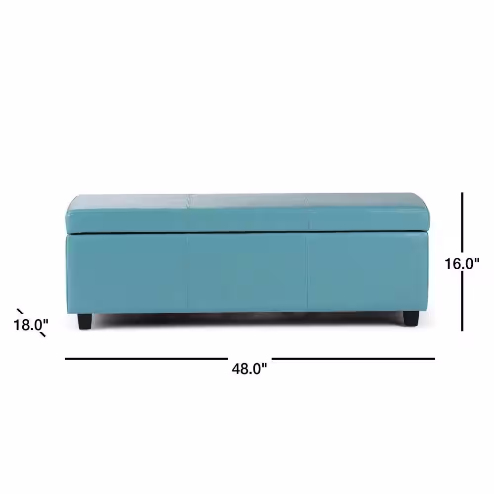 Simpli Home Avalon 48 in. Contemporary Storage Ottoman in Blue Faux Leather