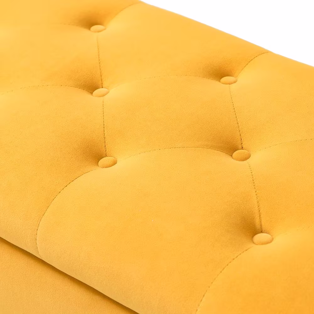 JAYDEN CREATION Hippolytus Mustard Fabric Top Tufted 45.5 in.Wx15.5 in.Dx18.5 in.H Storage Bench with Nailhead Trim