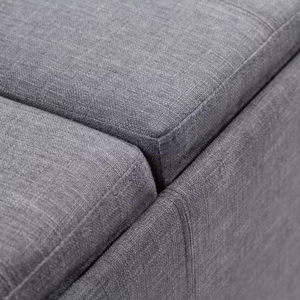 Simpli Home Avalon 42 in. Wide Contemporary Rectangle Storage Ottoman in Slate Grey Linen Look FabricBedroom Bench