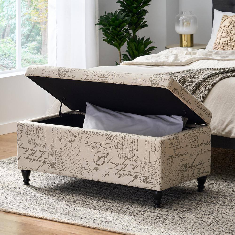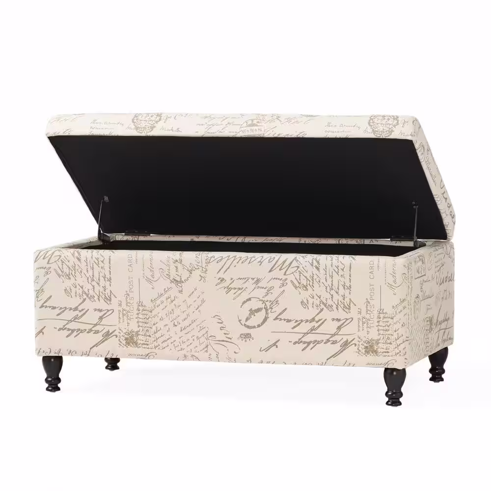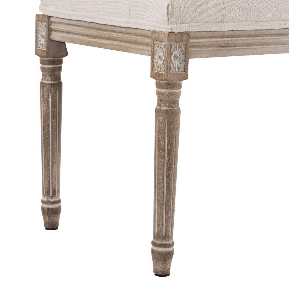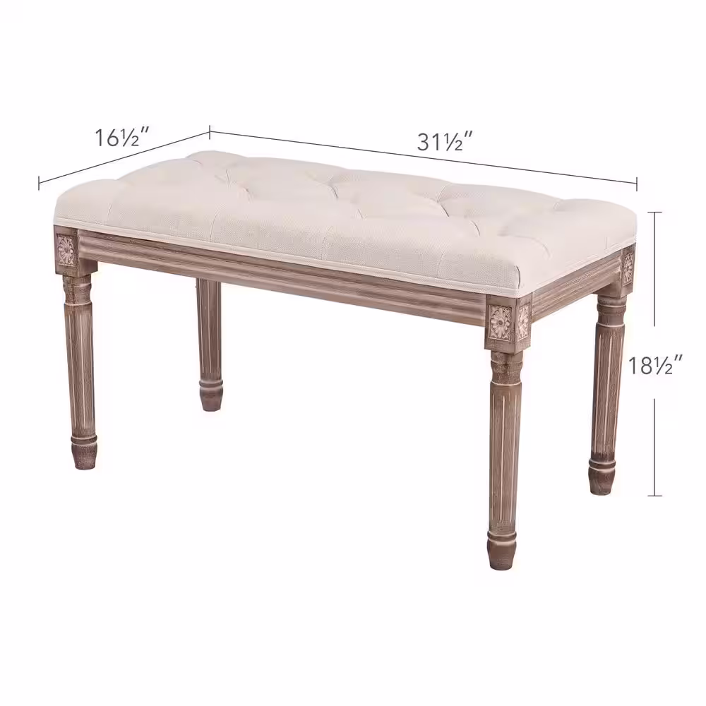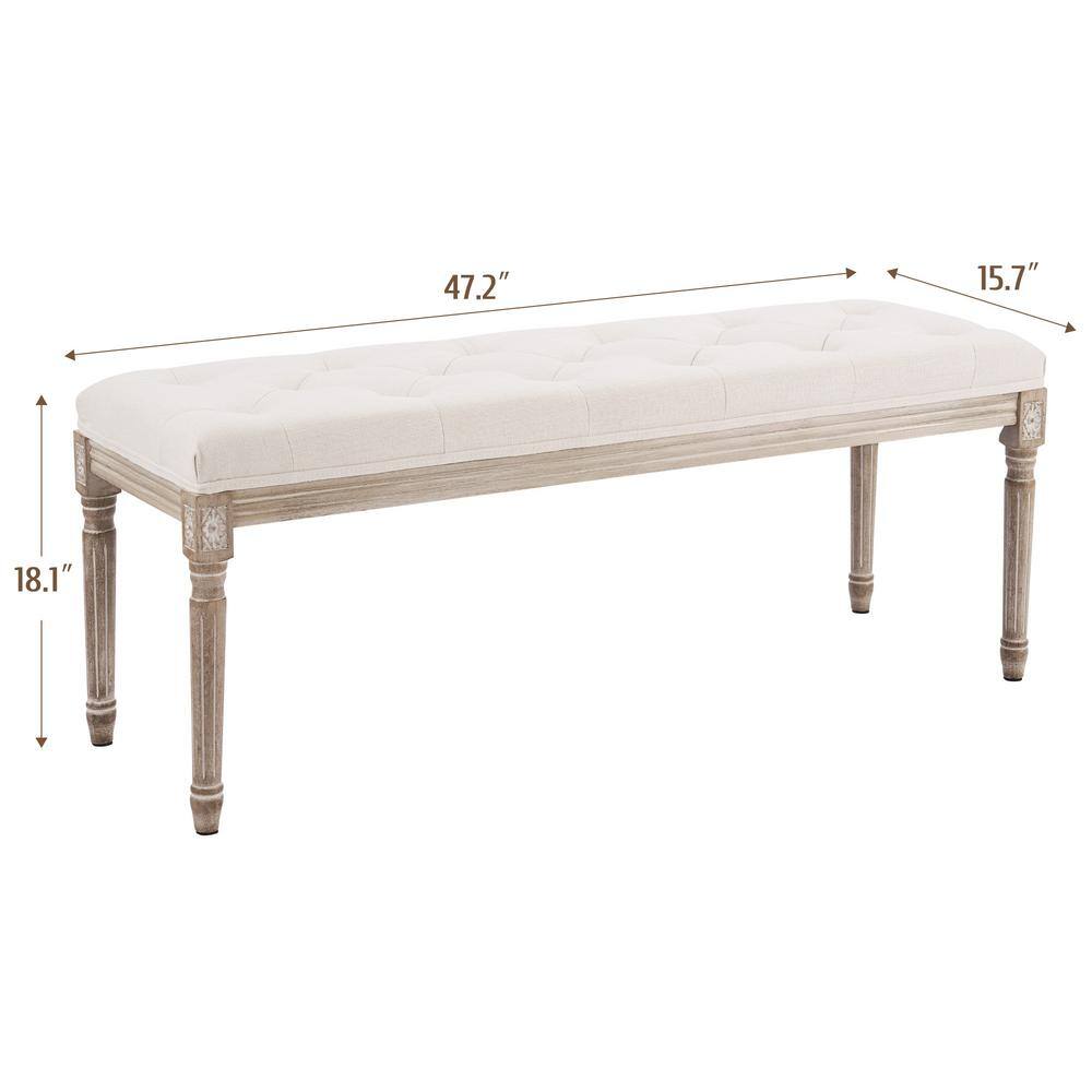 Merra Beige French Vintage Upholstered Bench with Carved Solid Wood Frame (18.1 in. H x 47.2 in. W x 15.7 in. D)