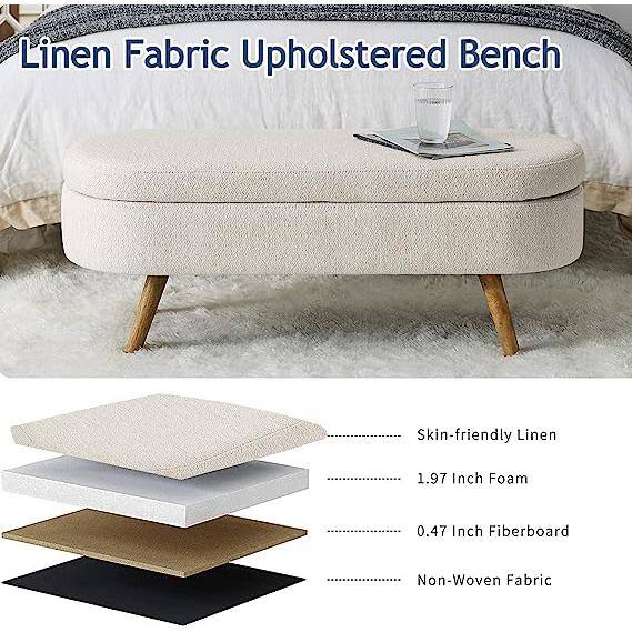 None Beige 43.5 in. Bedroom Bench Oval Storage Bench Ottoman with Wood Legs for Entryway Living Room