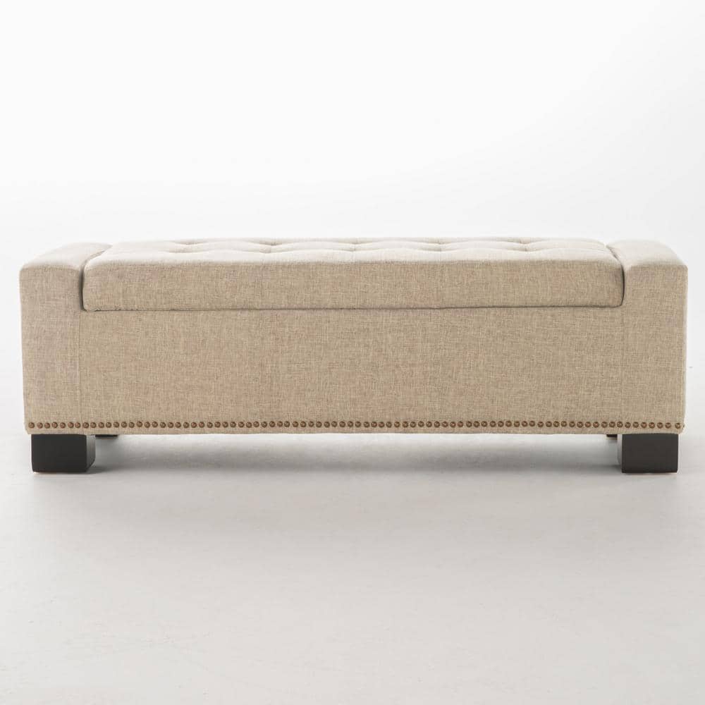 Linon Home Decor Galena Natural 60 in. Bench with Cushioned Seat and Nailhead Accents