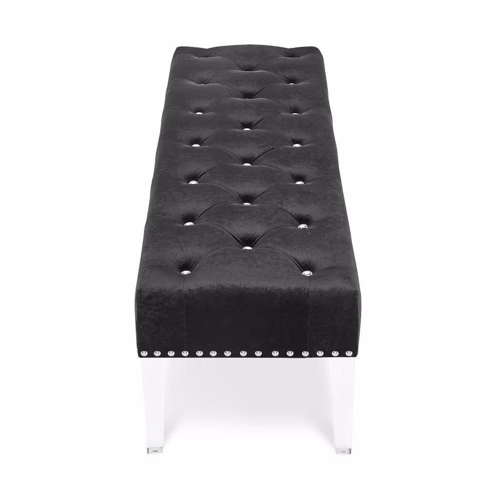 Benjara Black Velvet Upholstered Buttoned Bench 18.75 in. L x 49 in. W x 19 in. H