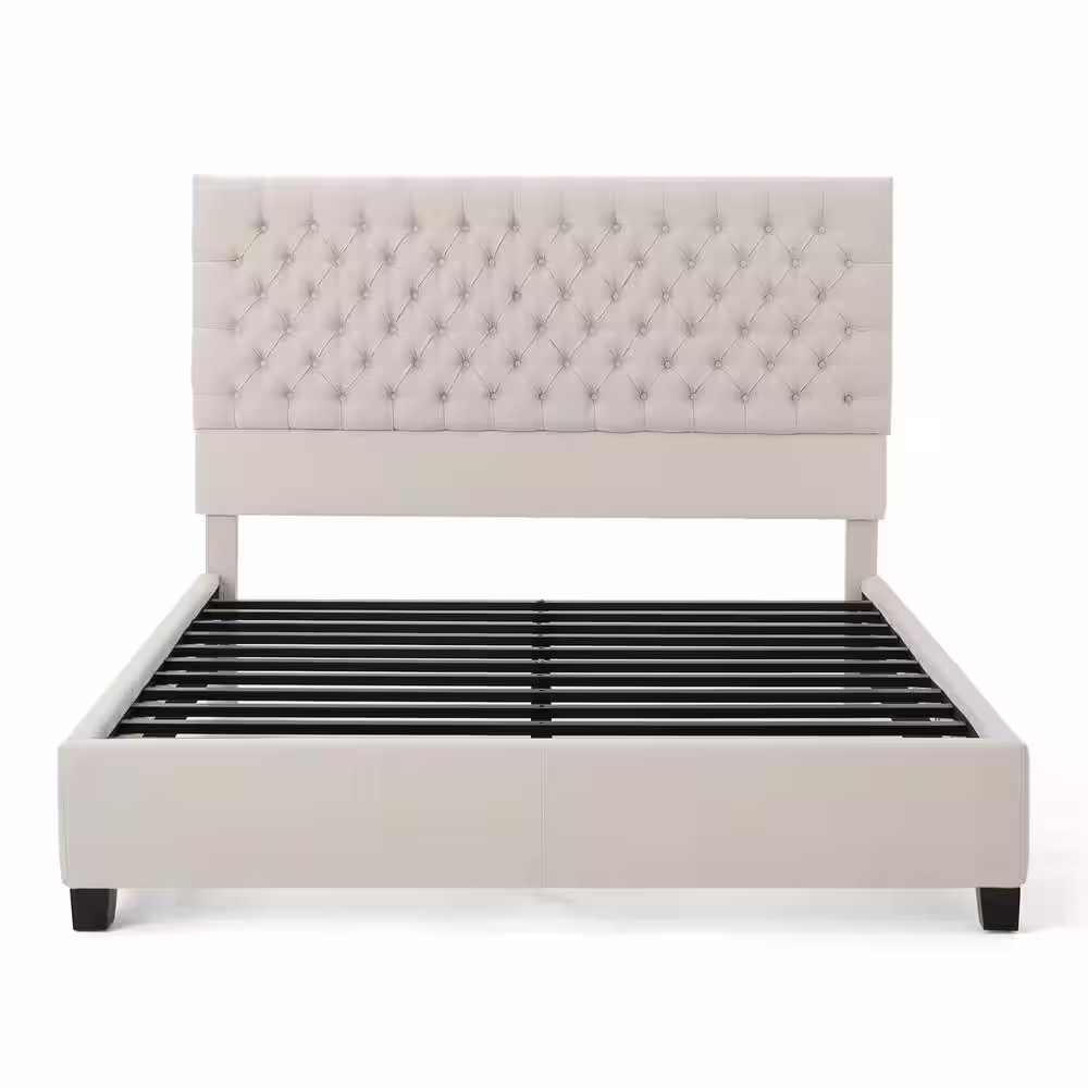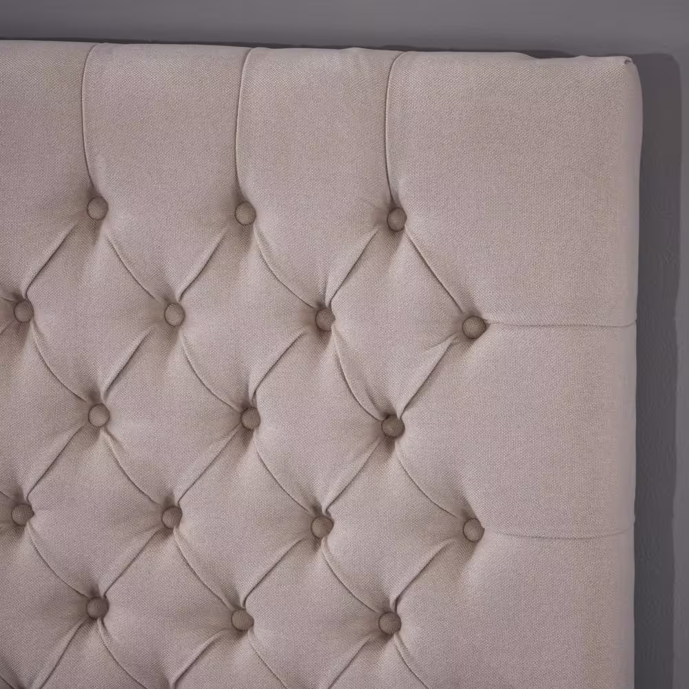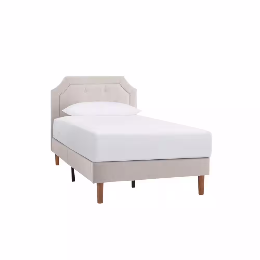 StyleWell Vinedale Biscuit Beige Upholstered Twin Platform Bed with Notch Back and Tufting (39.2 in W. X 38.80 in H.)