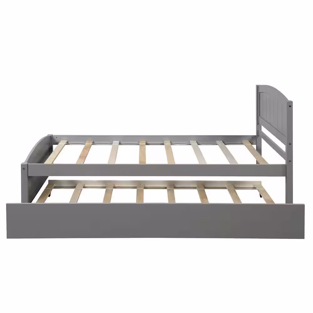 Harper & Bright Designs Classic 41.7 in. W Gray Wood Frame Twin Size Platform Bed with Trundle