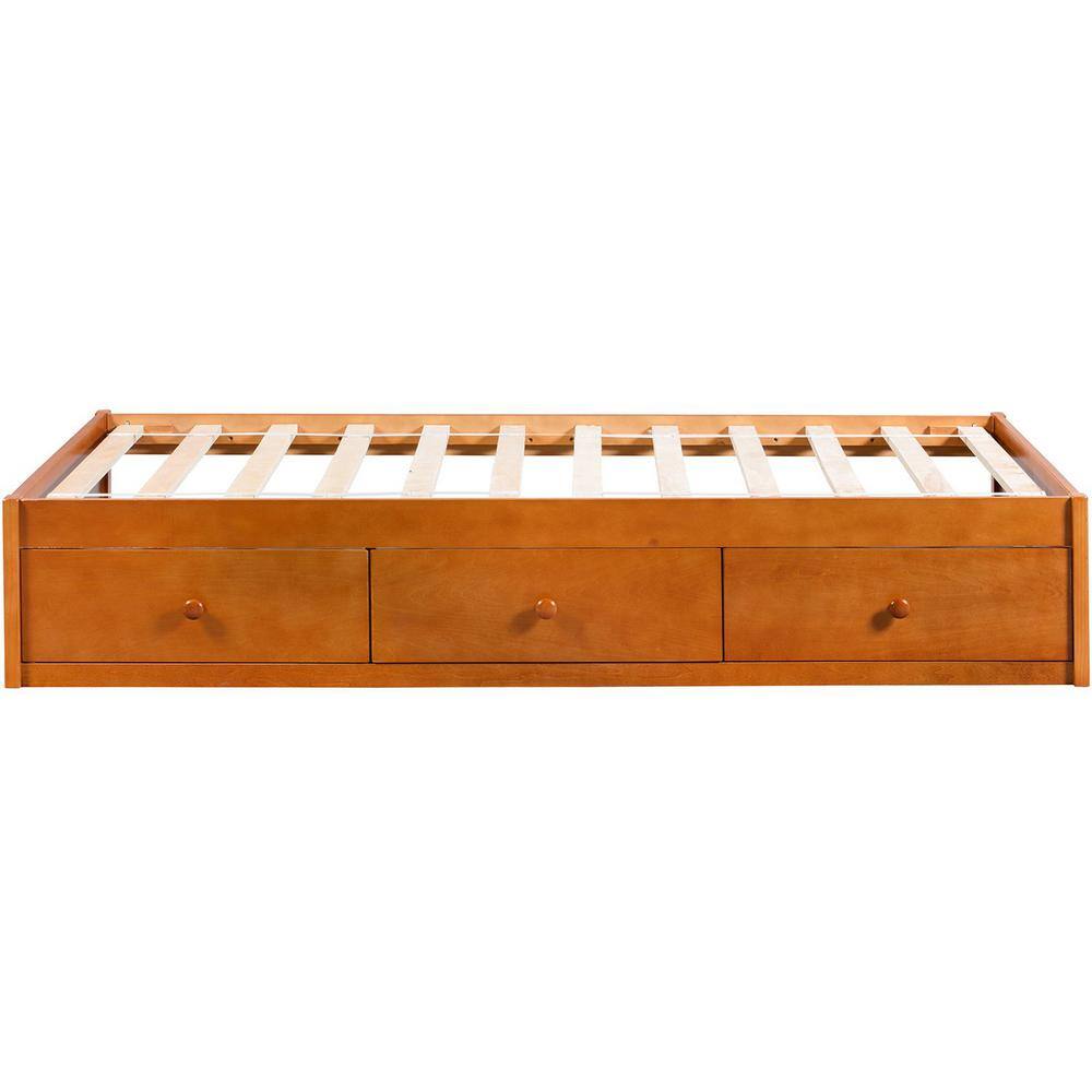 Harper & Bright Designs Oak Twin Size Platform Storage Bed with 3-Drawers