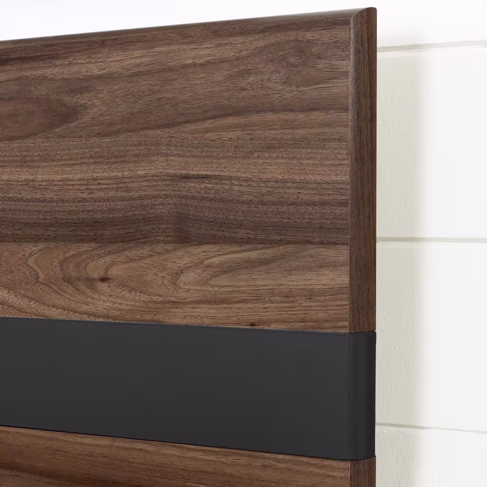 South Shore Olvyn Natural Walnut and Charcoal Queen Size Bed 63.25 in. W with Headboard