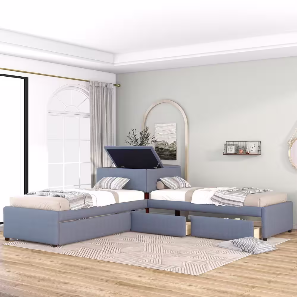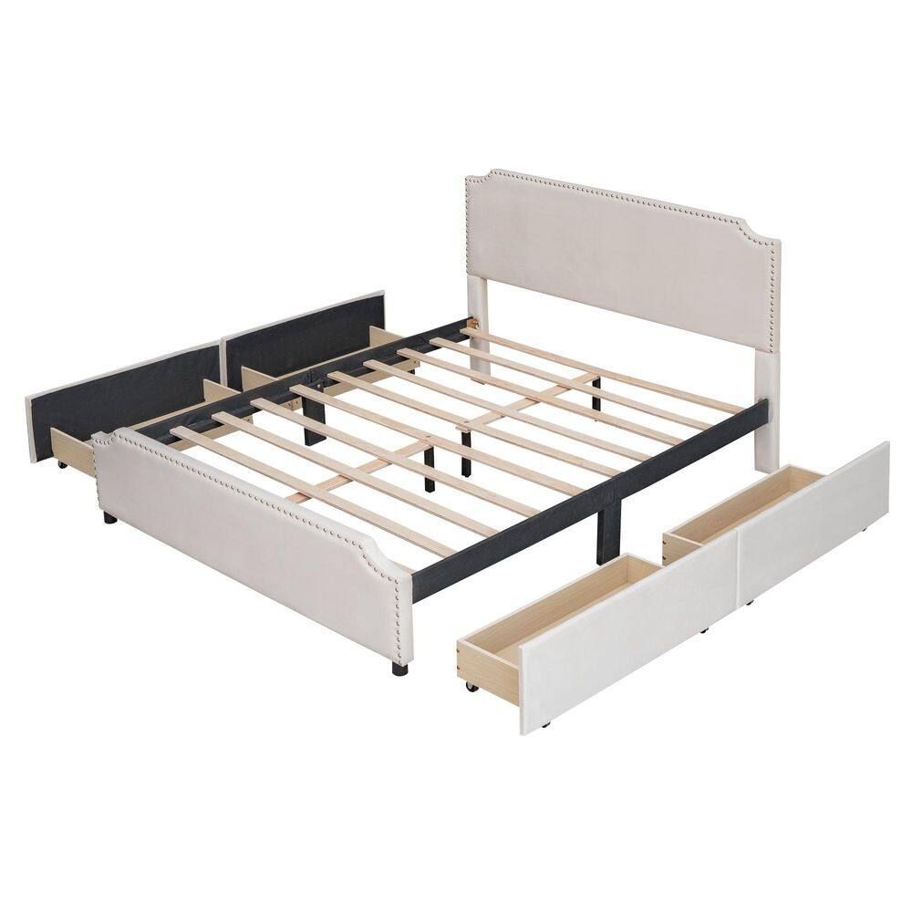 Harper & Bright Designs Beige Wood Frame Queen Size Platform Bed with 2-Drawers and Twin XL Trundle