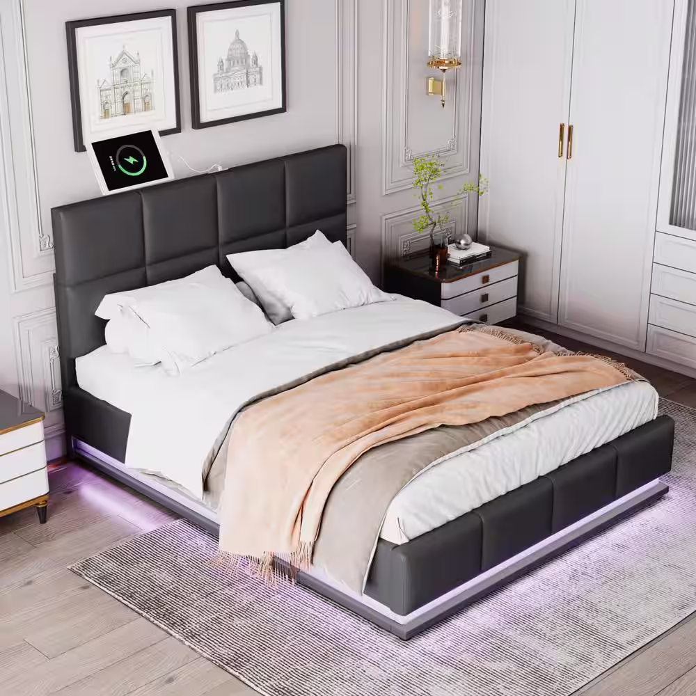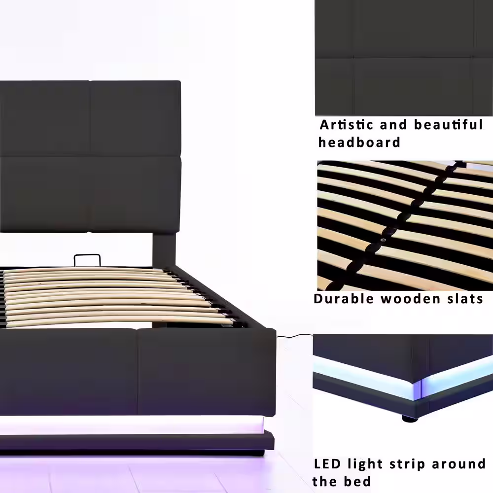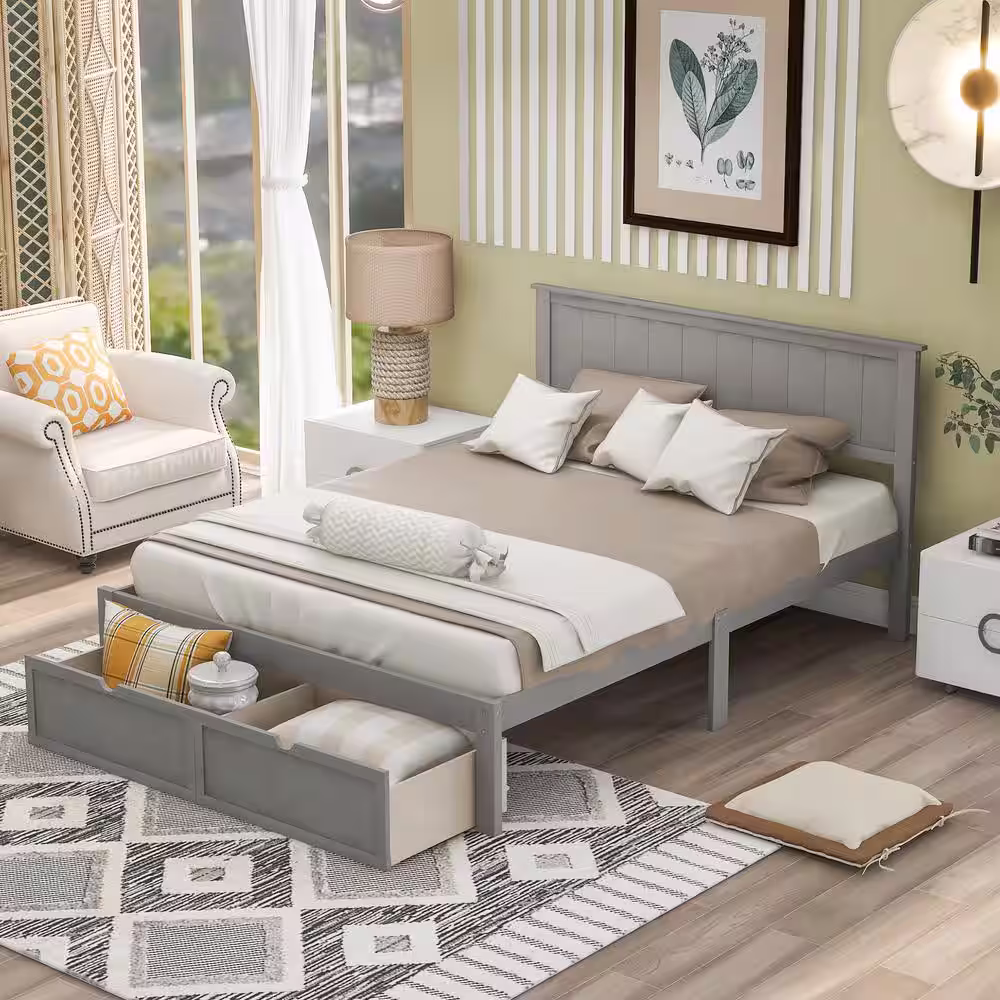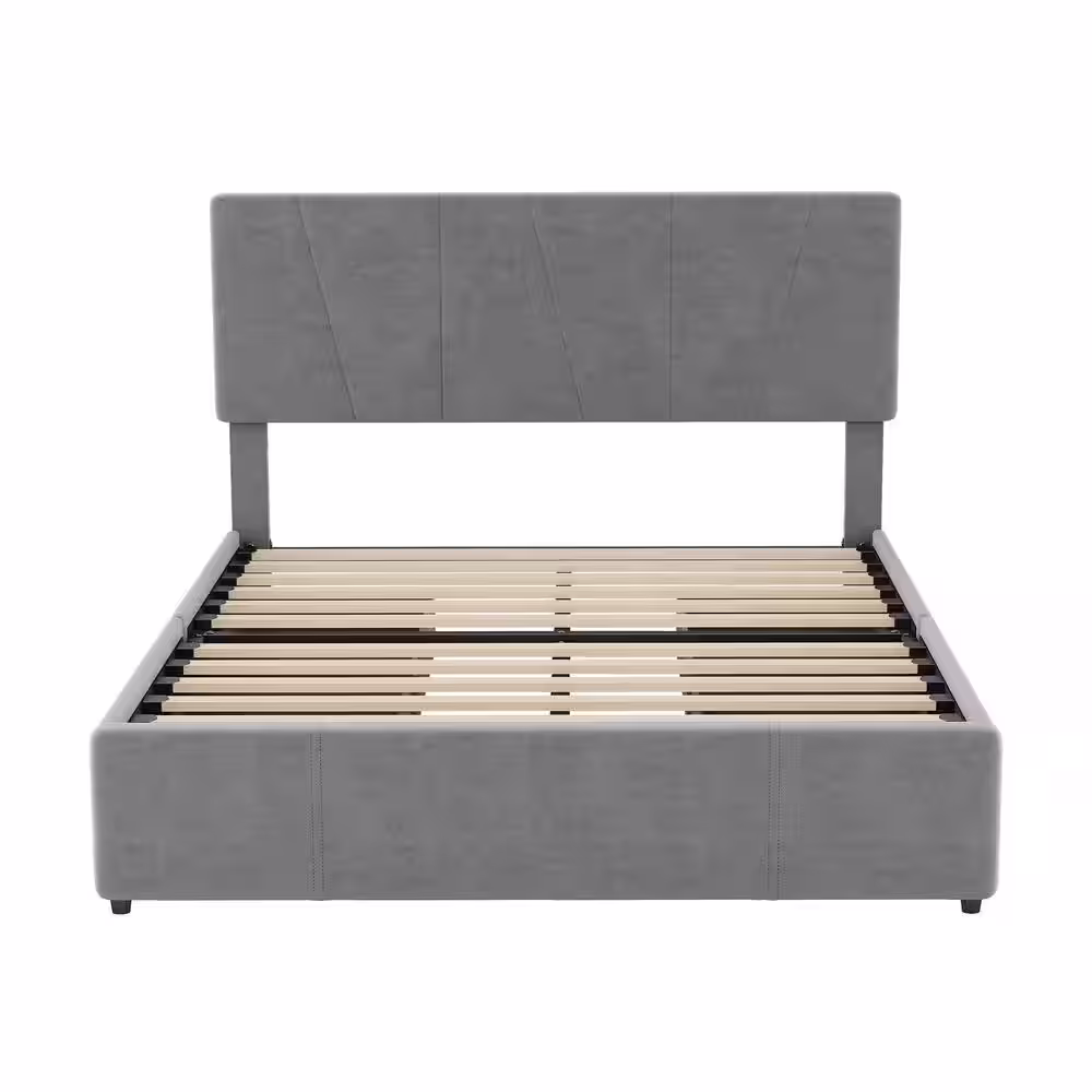 Harper & Bright Designs Gray Upholstery Wood Frame Full Size Platform Bed with 4 Drawers and Adjustable Headboard