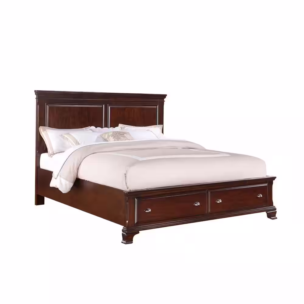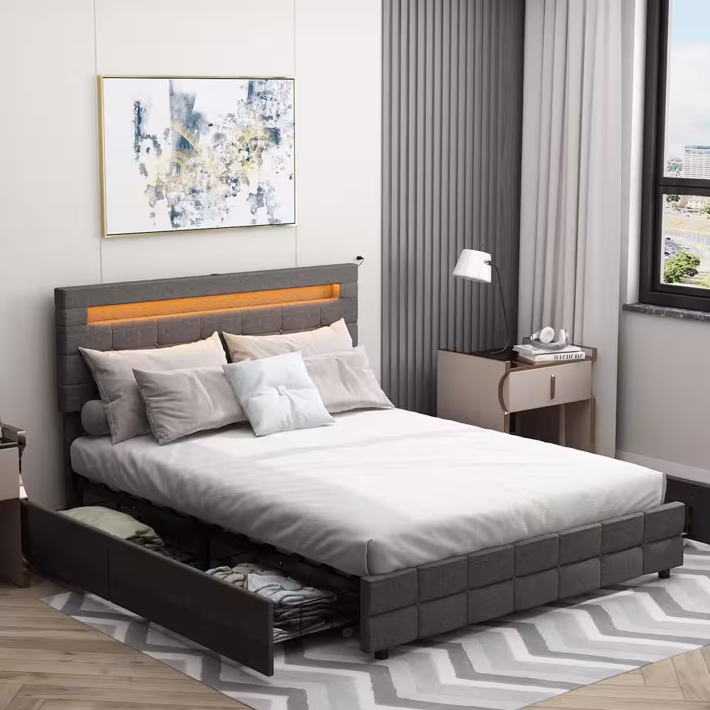 Harper & Bright Designs 64.5 in. W Beige Gray Queen Size Linen Wood Frame Platform Bed with 4-Drawers