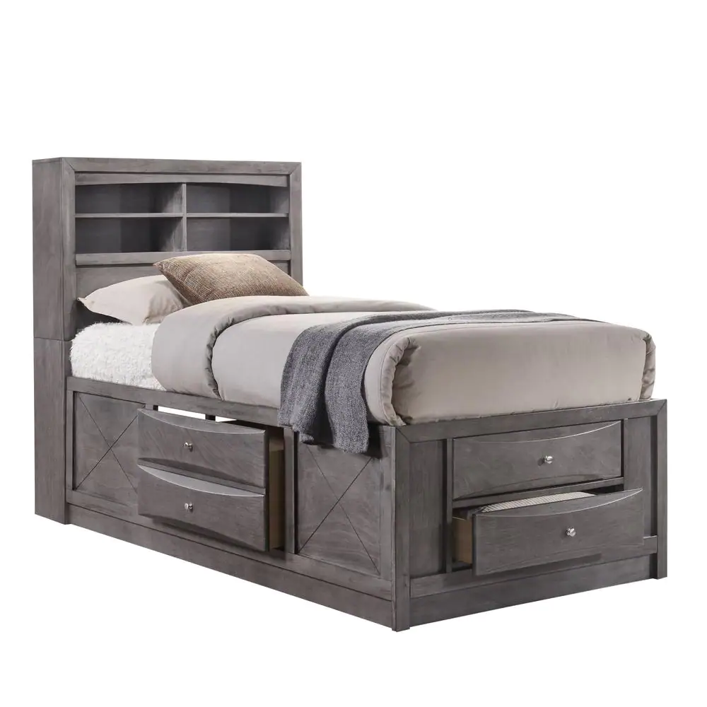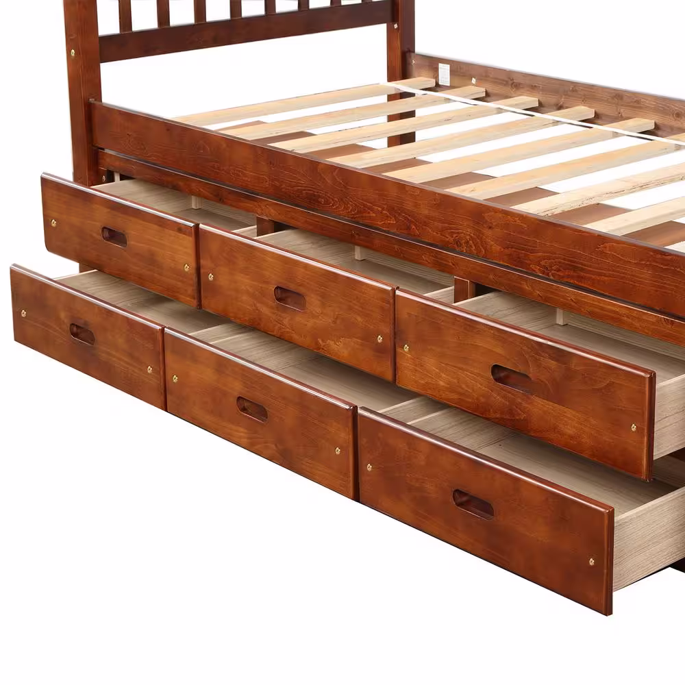 Harper & Bright Designs Walnut Twin Size Platform Storage Solid Wood Bed with 6-Drawers
