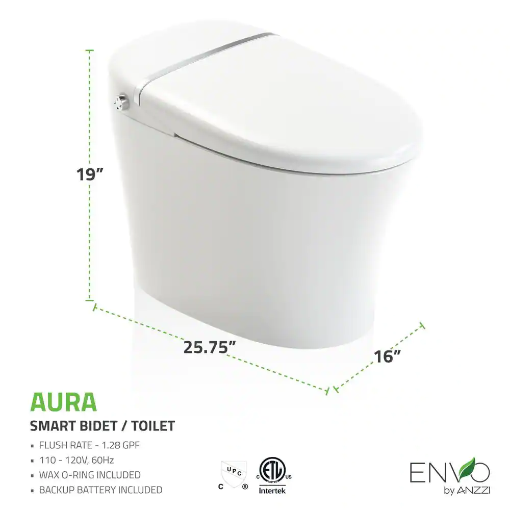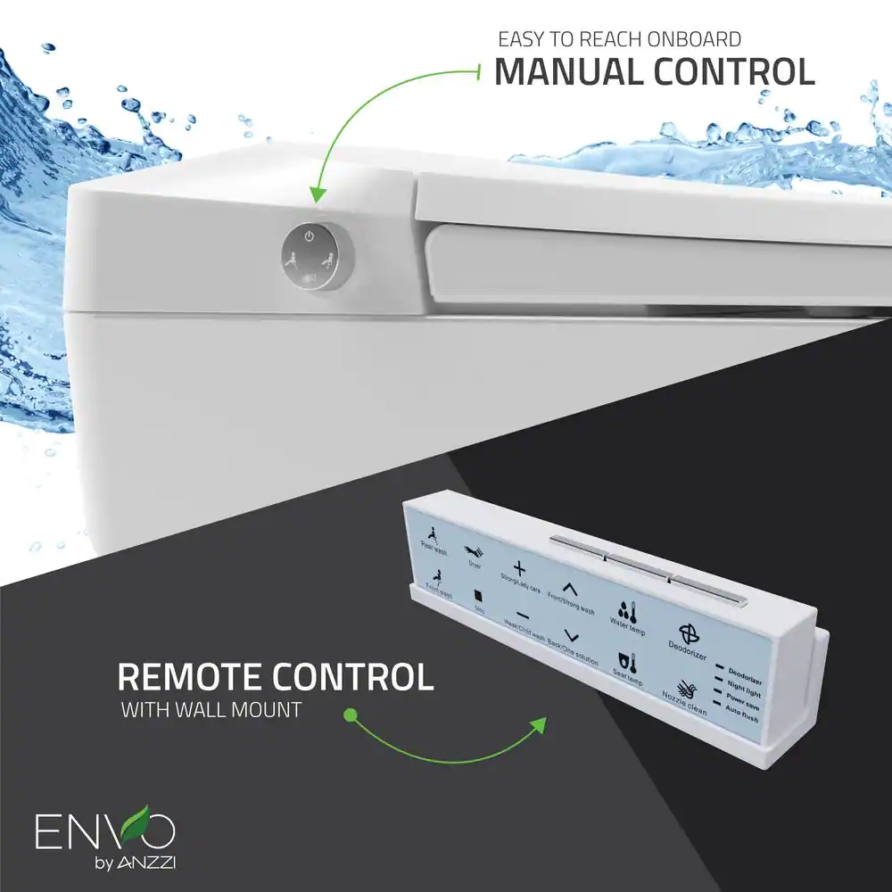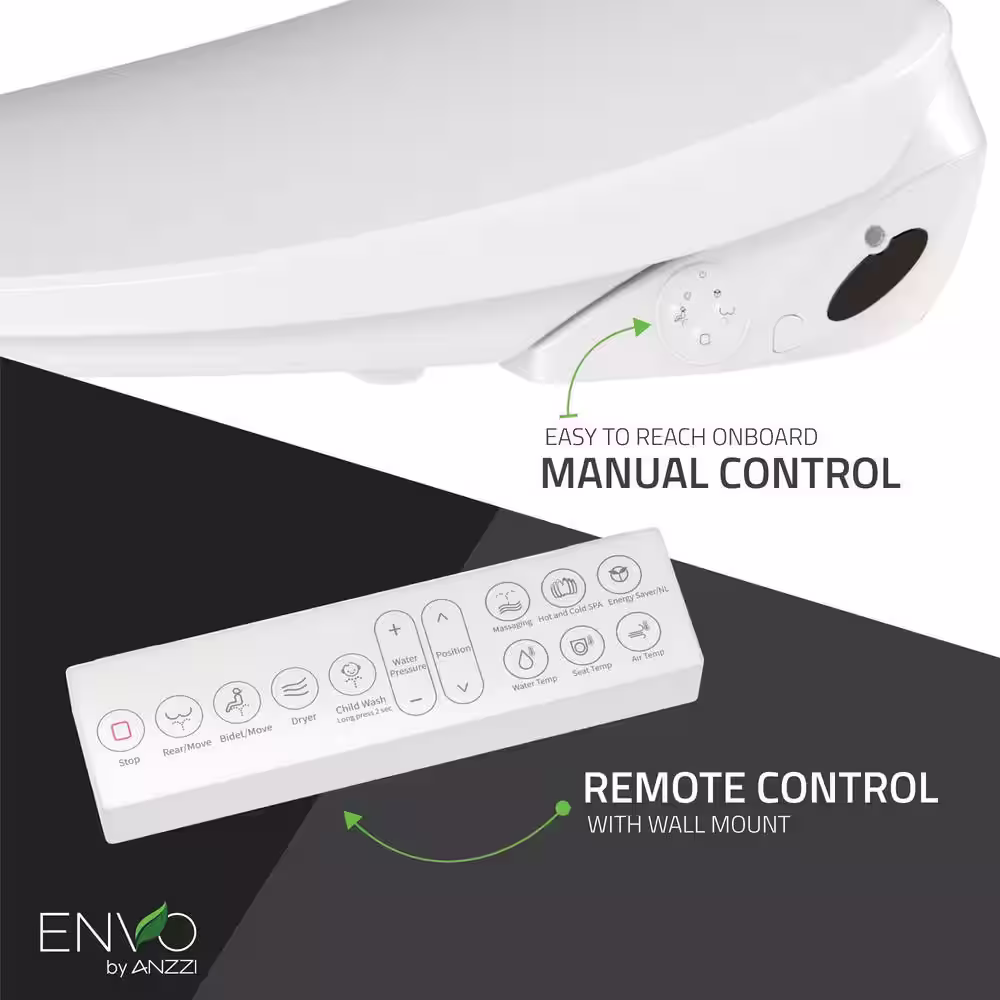 ANZZI Envo Shore Smart Electric Bidet Seat for Elongated Toilet in White with Remote Control and Heated Seat